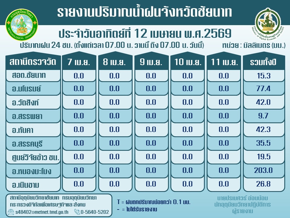 พยากรณ์อากาศ ประจำวันที่ 12 เมษายน 2569