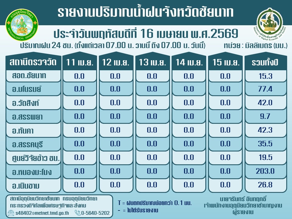 พยากรณ์อากาศ ประจำวันที่ 16 เมษายน 2569