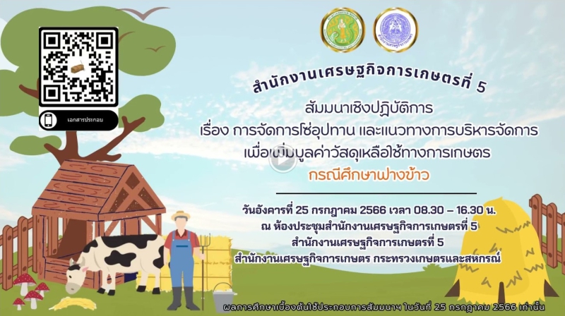 กลุ่มยุทธศาสตร์พัฒนาการเกษตร เข้าร่วมสัมมนาเชิงปฏิบัติการ เรื่อง การจัดการโซ่อุปทาน และแนวทางการบริหารจัดการเพื่อเพิ่มมูลค่าวัสดุเหลือใช้ทางการเกษตร กรณีศึกษาฟางข้าว ผ่านระบบประชุมออนไลน์ Zoom Cloud Meetings จากห้องประชุมสำนักงานเศรษฐกิจการเกษตรที่ 5 จังหวัดนครราชสีมา ในการประชุมเป็นการร่วมหารือแนวทางการบริหารจัดการฟางข้าว ตลอดจนศึกษารูปแบบการจัดการโซ่อุทานของการนำวัสดุเหลือใช้จากฟางข้าวมาใช้ประโยชน์ และจัดทำแนวทางการบริหารจัดการเพื่อเพิ่มมูลค่าวัสดุเหลือใช้จากฟางข้าว โดยมี นางสุจารีย์ พิชา ผู้อำนวยการสำนักงานเศรษฐกิจการเกษตรที่ 5