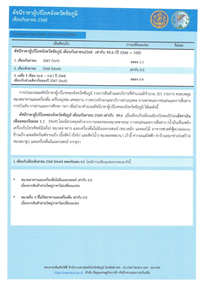 ประชาสัมพันธ์ ข่าวดัชนีราคาผู้บริโภคของจังหวัดชัยภูมิ