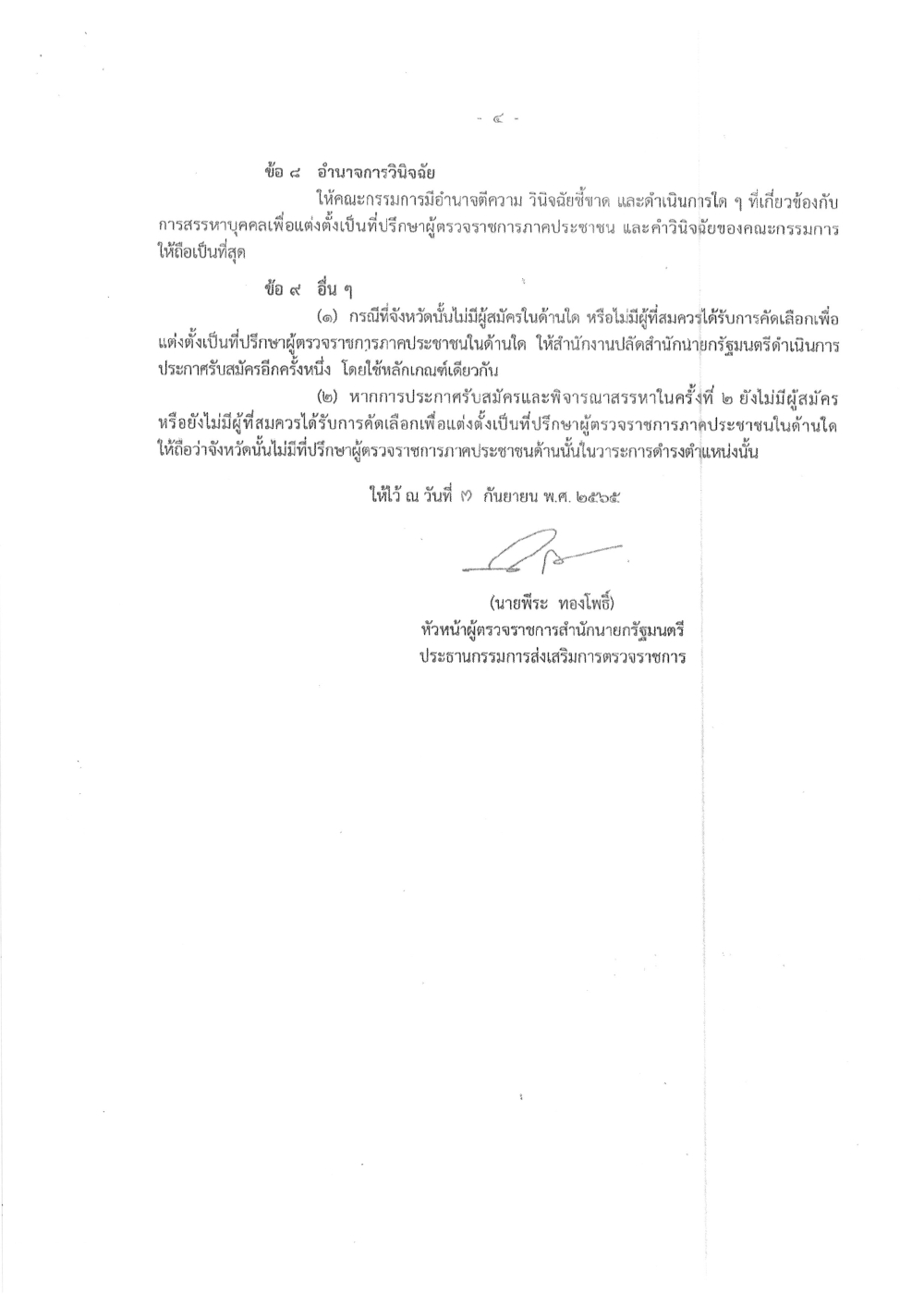 ประกาศคณะกรรมการส่งเสริมการตรวจราชการ เรื่อง หลักเกณฑ์ วิธีการ และเงื่อนไข การสรรหาบุคคลเพื่อแต่งตั้งเป็นที่ปรึกษาผู้ตรวจราชการภาคประชาชน