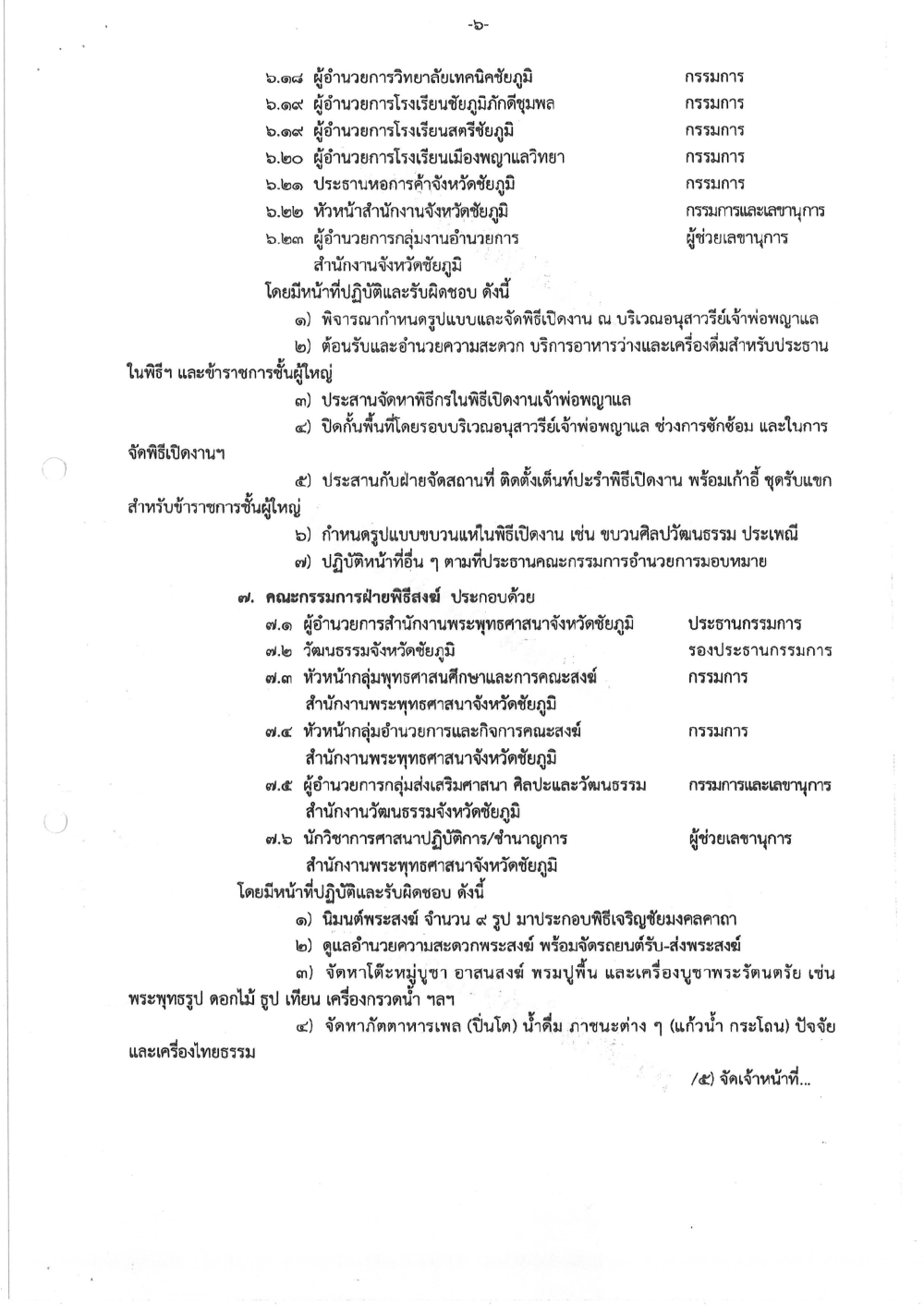 คำสั่งจังหวัดชัยภูมิ ที่ 8647/2565 เรื่อง แต่งตั้งคณะกรรมการดำเนินการจัดงานเจ้าพ่อพญาแล ประจำปี 2566