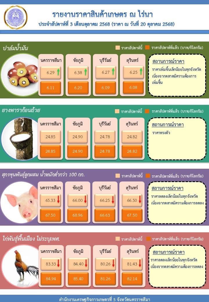 รายงานราคาสินค้าเกษตร ณ ไร่นา ประจำสัปดาห์ที่ 3 เดือนตุลาคม 2568 (ราคา ณ วันที่ 20 ตุลาคม 2568)