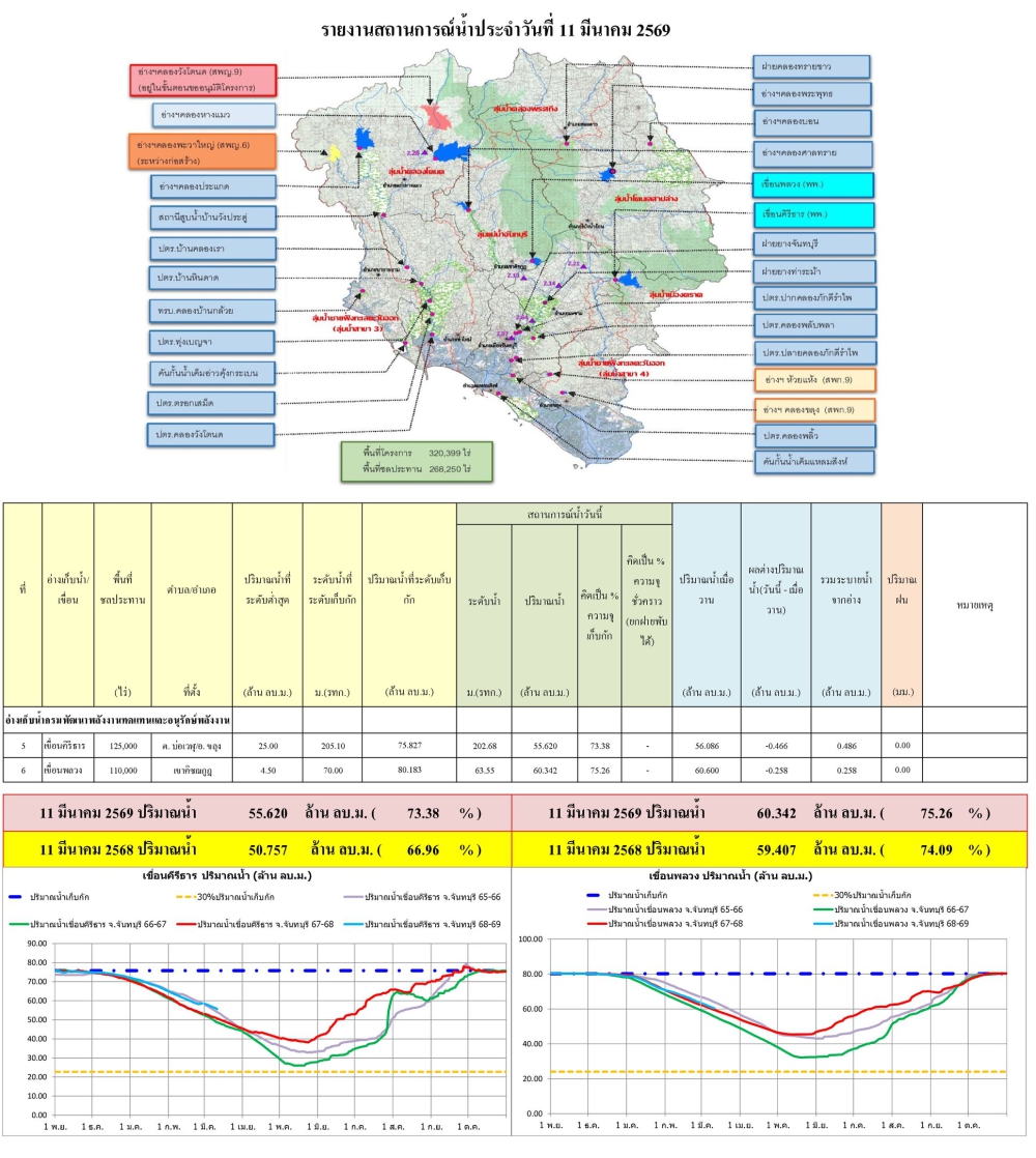 รายงานปริมาณน้ำฝนจังหวัดจันทบุรี/สถานการณ์น้ำ ประจำวันที่ 11 มีนาคม 2569