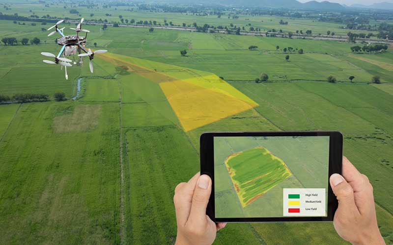 การเกษตรกรรมที่นำเทคโนโลยีมาช่วยในการจัดการการเกษตรให้มีประสิทธิภาพมากขึ้น โดยเฉพาะระบบการประมวลผลข้อมูล และจัดเก็บข้อมูลทางอากาศจากโดรนและดาวเทียม โดยการใช้เทคโนโลยีอินเทอร์เน็ตแห่งสรรพสิ่ง (IoT) คือการเชื่อมโยงของอุปกรณ์อัจฉริยะทั้งหลายผ่านอินเทอร์เน็ตที่อาทิ แอปพลิเคชัน แว่นตากูเกิลกลาส ที่สามารถเชื่อมต่อข้อมูล ทั้งความเร็ว ระยะทาง สถานที่ และสถิติได้