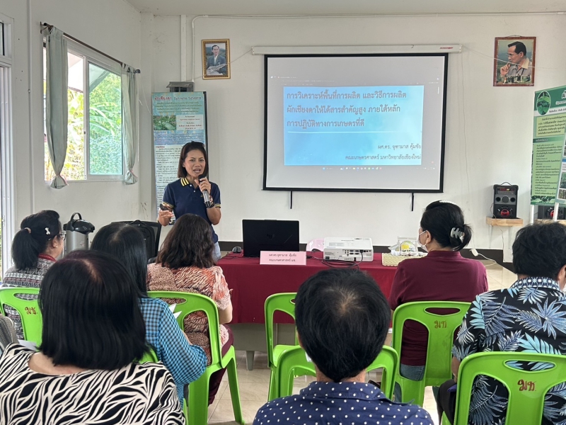 เจ้าหน้าที่สำนักงานเกษตรและสหกรณ์จังหวัดเชียงใหม่ ร่วมจัดโครงการฝึกอบรมเกษตรกร หลักสูตร “พัฒนาความรู้ ยกระดับการปลูกพืชสมุนไพร พัฒนาคุณภาพวัตถุดิบสมุนไพรและวิธีการผลิตที่ให้สมุนไพรได้สารสำคัญ และการศึกษาดูงาน” ภายใต้โครงการส่งเสริมและพัฒนาสินค้าเกษตรชีวภาพ (สมุนไพร) ครั้งที่ 1 โดยมีนายเวชยันต์ ทองทิพย์ รักษาราชการแทนเกษตรและสหกรณ์จังหวัดเชียงใหม่ เป็นประธานเปิดโครงการฝึกอบรมดังกล่าว โดยภาคเช้า ได้รับเกียรติจากอาจารย์จากคณะเกษตรศาสตร์ มหาวิทยาลัยเชียงใหม่ และเจ้าหน้าที่จากสำนักงานสาธารณสุขจังหวัดเชียงใหม่ ในการบรรยายหัวข้อ การวิเคราะห์พื้นที่การผลิตฯ และวิธีการผลิตผักเชียงดาให้ได้สารสําคัญสูง และอยู่ภายใต้หลักการปฏิบัติทางการเกษตรที่ดี (GAP), พ.ร.บ.ผลิตภัณฑ์สมุนไพร การจำหน่ายสมุนไพร ณ ศูนย์ศึกษาการพัฒนาห้วยฮ่องไคร้อันเนื่องมาจากพระราชดำริ อำเภอดอยสะเก็ด จังหวัดเชียงใหม่ ในส่วนภาคบ่าย ได้ศึกษาดูงานและเยี่ยมแปลงสาธิต ณ ศูนย์เรียนรู้ เพื่อเพิ่มพูนความรู้ ในการปลูกผักเชียงดาให้เกิดการพัฒนาที่ยั่งยืนต่อไป
