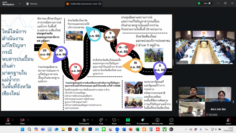 นางจีระนันท์ สว่างดวง เกษตรและสหกรณ์จังหวัดเชียงใหม่ มอบหมายให้เจ้าหน้าที่กลุ่มช่วยเหลือเกษตรกรและโครงการพิเศษ สำนักงานเกษตรและสหกรณ์จังหวัดเชียงใหม่ เข้าร่วมประชุมคณะกรรมการแก้ไขปัญหาคุณภาพน้ำในแม่น้ำกก อำเภอแม่อาย จังหวัดเชียงใหม่ แบบบูรณาการ ครั้งที่ 1/2568 ผ่านสื่อออนไลน์อิเล็กทรอนิกส์ แอปพลิเคชั่น Zoom Meeting โดยมี นายศิวกร บัวป้อง รองผู้ว่าราชการจังหวัดเชียงใหม่ เป็นประธานการประชุม ร่วมกับคณะกรรมการแก้ไขปัญหาคุณภาพน้ำในแม่น้ำกก อำเภอแม่อาย จังหวัดเชียงใหม่ แบบบูรณาการ ณ ห้องประชุม 3 ชั้น 3 อาคารอำนวยการ ศาลากลางจังหวัดเชียงใหม่