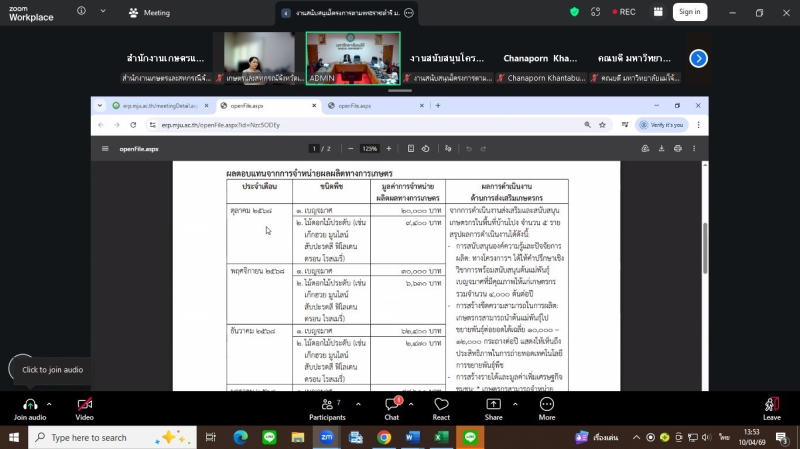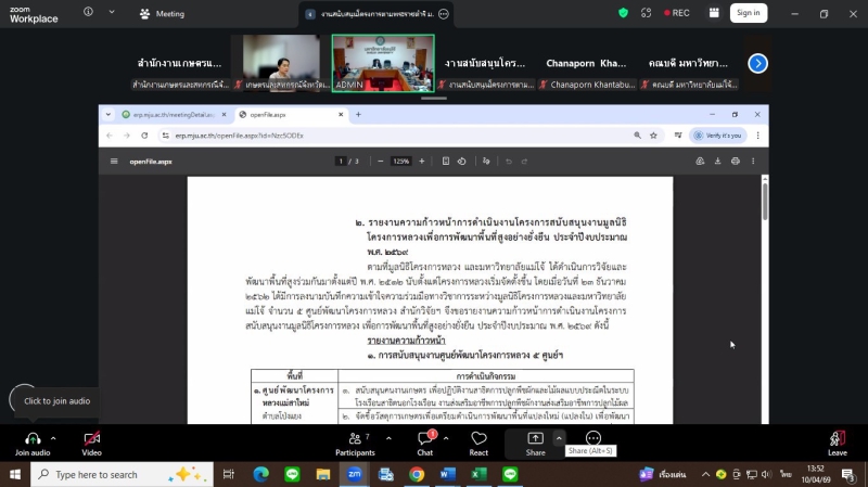 วันศุกร์ที่ 10 เมษายน 2569 เวลา 13.30 น. นางจีระนันท์ สว่างดวง เกษตรและสหกรณ์จังหวัดเชียงใหม่ เข้าร่วมประชุมคณะกรรมการบริการวิชาการ เเละ ประชุมคณะกรรมหารดำเนินงานกองทุนบริการวิชาการมหาวิทยาลัยเเม่โจ้ โดยรองศาสตราจารย์ ดร. วีระพล ทองมารองอธิการบดีมหาวิทยาลัยแม่โจ้เป็นประธานในการประชุมครั้งนี้ เพื่อวางแผน กำหนดนโยบาย และติดตามผลการดำเนินโครงการที่มุ่งให้บริการองค์ความรู้แก่สังคม รวมทั้งพิจารณาการใช้งบประมาณให้เกิดประโยชน์สูงสุด โปร่งใส และตรวจสอบได้ ตลอดจนส่งเสริมการเชื่อมโยงองค์ความรู้จากมหาวิทยาลัยสู่ชุมชนและหน่วยงานภายนอกอย่างมีประสิทธิภาพ