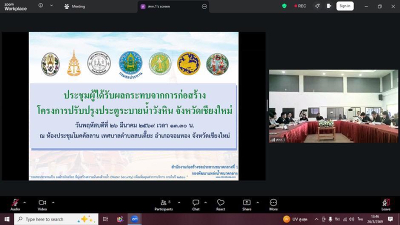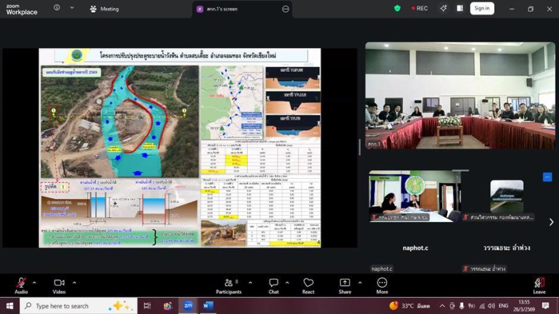 วันที่ 26 มีนาคม 2569 นายพรเทพ ศรีธนาธร ผู้ตรวจราชการกระทรวงเกษตรและสหกรณ์ เขต 15 และ 16 ได้มอบหมายให้ นางจีระนันท์ สว่างดวง เกษตรและสหกรณ์จังหวัดเชียงใหม่ เข้าร่วมการประชุมผู้ได้รับผลกระทบจากการก่อสร้างโครงการปรับปรุงประตูระบายน้ำวังหิน จังหวัดเชียงใหม่ ผ่านระบบการประชุมออนไลน์ (Zoom Meeting) ณ ห้องประชุมชั้น 1 สำนักงานเกษตรและสหกรณ์จังหวัดเชียงใหม่