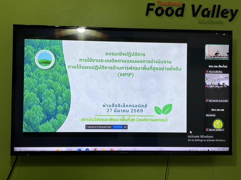 วันศุกร์ที่ 27 มีนาคม 2569 เวลา 09.00 น. นางจีระนันท์ สว่างดวง เกษตรและสหกรณ์จังหวัดเชียงใหม่ มอบหมายให้ เจ้าหน้าที่กลุ่มช่วยเหลือเกษตรกรและโครงการพิเศษ เข้าร่วมอบรมเชิงปฏิบัติการ การใช้งานระบบติดตามแผนผลการดำเนินงานภายใต้แผนปฏิบัติการด้านการพัฒนาพื้นที่สูงอย่างยั่งยืน (MPIP) ผ่านสื่ออิเล็กทรอนิกส์ ผ่านระบบ (Zoom Meeting) ณ ห้องประชุมชั้น 1 สำนักงานเกษตรและสหกรณ์จังหวัดเชียงใหม่โดยมี ดร.นภาพร มณฑานพรัตน์ผู้อำนวยการสำนักยุทธศาสตร์และแผน สวพส. เป็นประธานกล่าวเปิดการประชุมเชิงปฏิบัติการเนื่องด้วย ทางสถาบันวิจัยและพัฒนาพื้นที่สูง (องค์การมหาชน) ได้พัฒนาและปรับปรุงระบบติดตามแผนผลการดำเนินงานภายใต้แผนปฏิบัติการด้านการพัฒนาพื้นที่สูงอย่างยั่งยืน (MPlP) เพื่อให้การติดตามแผนผลการดำเนินงานและการใช้จ่ายงบประมาณของหน่วยงานร่วมบูรณาการ ทั้งในระดับหน่วยงานส่วนกลางกระทรวง กรม ระดับจังหวัด ระดับภูมิภาค ระดับท้องถิ่น หน่วยงานเอกชน/MOU มีความสะดวกรวดเร็ว และสามารถนำข้อมูลจากระบบฯ ไปใช้ในการวิเคราะห์ประกอบการวางแผนสนับสนุนกิจกรรมและงบประมาณสำหรับดำเนินงานบนพื้นที่สูงให้มีประสิทธิภาพ.