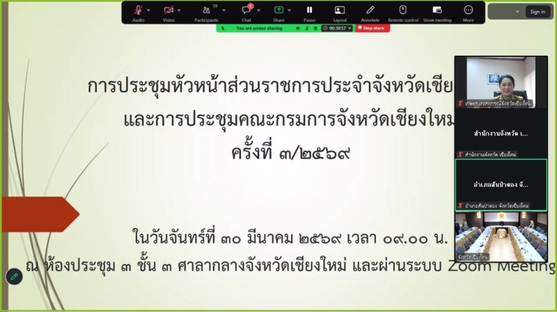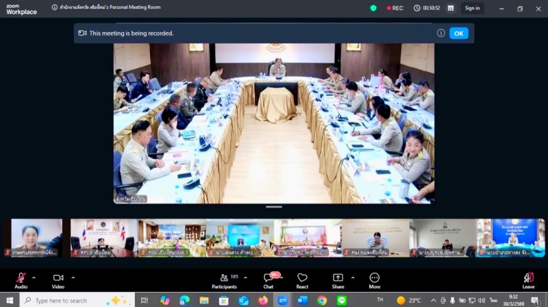 นางจีระนันท์ สว่างดวง เกษตรและสหกรณ์จังหวัดเชียงใหม่ เข้าร่วมประชุมหัวหน้าส่วนราชการจังหวัดเชียงใหม่ และการประชุมคณะกรมการจังหวัดเชียงใหม่ ประจำเดือนมีนาคม 2569 โดยมี นายรัฐพล นราดิศร ผู้ว่าราชการจังหวัดเชียงใหม่ เป็นประธานการประชุม พร้อมทั้งรองผู้ว่าราชการจังหวัดเชียงใหม่ นายชัชวาลย์ ปัญญา นายบุญลือ ธรรมธรานุรักษ์ และนายศิวกร บัวป้อง พร้อมด้วยหัวหน้าส่วนราชการและหน่วยงานที่เกี่ยวข้อง เข้าร่วมประชุมทั้งแบบออนไซต์และออนไลน์อย่างพร้อมเพรียง ที่ประชุมได้รายงานสถานการณ์ด้านต่าง ๆ ของจังหวัดเชียงใหม่ โดยเฉพาะจุด Hotspot จากการเผาป่าที่ส่งผลให้ค่าฝุ่นละออง PM 2.5 มีแนวโน้มสูงขึ้น อาจส่งผลกระทบต่อสุขภาพประชาชน และเตรียมประกาศพื้นที่บางส่วนเป็นเขตพื้นที่ประสบเหตุอัคคีภัย (ไฟป่า) เพื่อให้สามารถให้ความช่วยเหลือประชาชนได้ทันที ด้านสถานการณ์พลังงาน ปัจจุบันประชาชนยังมีความต้องการน้ำมันดีเซลจำนวนมาก ขณะที่สถานีบริการบางแห่งยังขาดแคลน แต่ชนิดน้ำมันอื่น ๆ ยังคงมีให้บริการตามปกติ