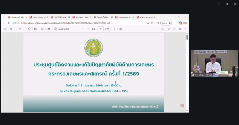 การประชุมศูนย์ติดตามและแก้ไขปัญหาภัยพิบัติด้านการเกษตร กระทรวงเกษตรและสหกรณ์ ครั้งที่ 1/2569