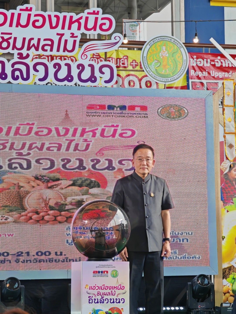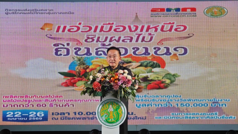 วันพฤหัสบดีที่ 23 เมษายน 2569 เวลา 16.00 น. ผู้ตรวจราชการกระทรวงเกษตรและสหกรณ์ เขตตรวจราชการที่ 15 และ 16 (นายพรเทพ ศรีธนาธร) เป็นประธานเปิดกิจกรรมส่งเสริมตลาดผู้บริโภคผลไม้ไทยกลุ่มภาคเหนือ ภายใต้ชื่องาน “แอ่วเมืองเหนือ ชิมผลไม้ถิ่นล้านนา” ระหว่างวันที่ 22 – 26 เมษายน 2569 ณ มีโชคพลาซ่า จังหวัดเชียงใหม่ พร้อมด้วย นางจีระนันท์ สว่างดวง เกษตรและสหกรณ์จังหวัดเชียงใหม่ หัวหน้าส่วนราชการ ผู้แทนหน่วยงานในสังกัดกระทรวงเกษตรและสหกรณ์จังหวัดเชียงใหม่ หน่วยงานภาครัฐ ภาคเอกชน สถาบันเกษตรกร และประชาชน เข้าร่วมงานการจัดงานในครั้งนี้ อ.ต.ก. มุ่งเน้นในการขับเคลื่อนนโยบายหลักด้าน “ตลาดนำการผลิต” กระทรวงเกษตรและสหกรณ์ ที่ต้องดำเนินการวางแผนด้านการผลิตให้ตรงกับความต้องการของตลาด เพื่อเข้าสู่กระบวนการโลจิสติกส์ อย่างมีประสิทธิภาพ ซึ่งการจัดงานในครั้งนี้ ไม่เพียงแต่ช่วยเพิ่มช่องทางการจำหน่ายและกระจายผลผลิตออกนอกแหล่งผลิตในช่วงที่มีผลผลิตจำนวนมากเท่านั้น แต่ยังเป็นการเพิ่มมูลค่าทางการตลาดของผลไม้เศรษฐกิจของประเทศ และเสริมสร้างรายได้ให้แก่เกษตรกรอย่างยั่งยืน ทั้งนี้ อ.ต.ก. ยังคงขับเคลื่อนกิจกรรมภายใต้แนวคิด “อ.ต.ก. แฟร์ 4 ภาค” อย่างต่อเนื่อง เพื่อกระจายผลผลิตตามฤดูกาลไปยังพื้นที่ที่มีศักยภาพ โดยการจัดงานในจังหวัดเชียงใหม่ที่เป็นศูนย์กลางเศรษฐกิจอันดับ 1 ของภาคเหนือ ถือเป็นอีกหนึ่งกลไกสำคัญในการเสริมความแข็งแกร่งให้กับระบบตลาดภายในประเทศ โดยคาดว่าจะสามารถต่อยอดโอกาสทางการตลาดให้แก่เกษตรกรและสร้างมูลค่าทางเศรษฐกิจให้กับพื้นที่ภาคเหนือได้อย่างเป็นรูปธรรม ภายในงาน อ.ต.ก. ได้คัดสรรผลไม้สดจากแหล่งผลิตและสินค้าเกษตรแปรรูปคุณภาพ จากผู้ประกอบการกว่า 60 ร้านค้า เข้าร่วมจำหน่ายผลไม้คุณภาพทั้งสดและแปรรูป พร้อมทั้งกิจกรรมนาทีทอง การแสดงดนตรีมินิคอนเสิร์ตจากศิลปินชื่อดัง และกิจกรรมบนเวทีตลอดทั้งวัน ระหว่างวันที่ 22 – 26 เมษายน 2569 เวลา 10.00 – 21.00 น. ณ มีโชคพลาซ่า จังหวัดเชียงใหม่