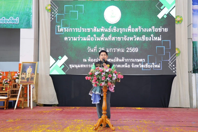 โครงการประชาสัมพันธ์เชิงรุกเพื่อสร้างเครือข่ายความร่วมมือในพื้นที่ในการขับเคลื่อนในทุกจังหวัดทั่วประเทศ เพื่อสื่อสารข้อมูลให้เข้าถึงเกษตรกร เสริมความเข้าใจที่ถูกต้อง และสร้างเครือข่ายความร่วมมือแก้ปัญหาเกษตรกรรมในพื้นที่ ซึ่งในวันนี้กระทรวงเกษตรฯ ร่วมกับ สำนักงานกองทุนฟื้นฟูและพัฒนาเกษตรกร ได้มีการขยายผลการจัดทำโครงการฯ มายังพื้นที่จังหวัดเชียงใหม่ เพื่ออำนวยความสะดวกให้แก่พี่น้องเกษตรกร รวมถึงเพื่อสร้างโอกาสทางการเข้าถึงข้อมูลและแลกเปลี่ยนองค์ความรู้ เกี่ยวกับแนวทางการขอรับการสนับสนุนจากหน่วยงานต่าง ๆ ที่เกี่ยวข้อง ระหว่างเจ้าหน้าที่และพี่น้องเกษตรกรในพื้นที่