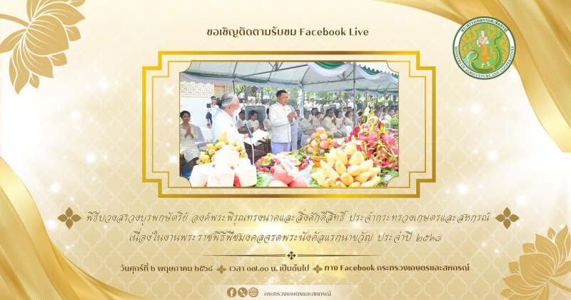 FACEBOOK LIVE : กระทรวงเกษตรและสหกรณ์ ขอเชิญรับชม การแถลงข่าวการจัดงาน “มหกรรมเกษตรไทยก้าวสู่อนาคต ด้วยศาสตร์พระราชา”