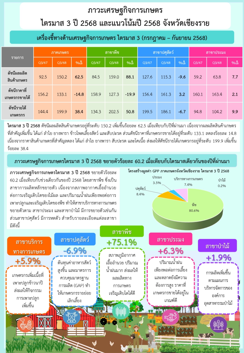 รายงานภาวะเศรษฐกิจการเกษตรไตรมาส 3 ปี 2568 และแนวโน้มปี 2568 จังหวัดเชียงราย