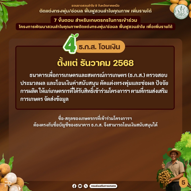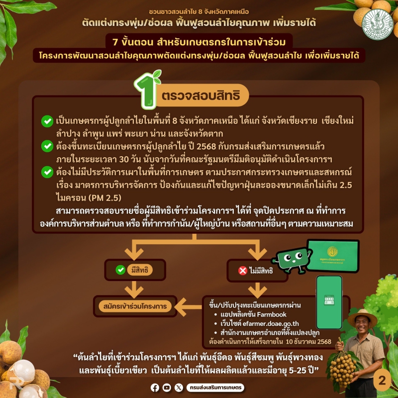 เปิด 7 ขั้นตอน ชาวสวนลำไย 8 จังหวัดภาคเหนือ ร่วมโครงการฟื้นฟูสวนลำไยฯ รับไร่ละ 1,000 บาท ไม่เกิน 10 ไร่