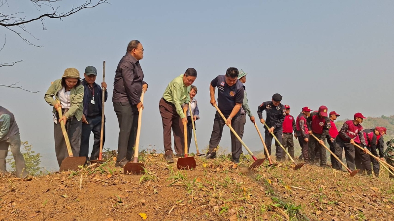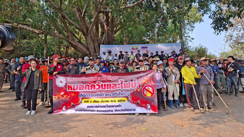 วันที่ 4 มีนาคม 2569 นายชูชีพ พงษ์ไชย ผู้ว่าราชการจังหวัดเชียงราย นายติ้น เหว่ ต่ง ผู้ว่าราชการจังหวัดท่าขี้เหล็ก เมียนมา นำประชาชน 2 จังหวัด ร่วมทำแนวกันไฟ บริเวณชายแดนไทย-พม่า บ้านผาหมี อำเภอแม่สาย จังหวัดเชียงราย เพื่อเป็นแสดงออกในเชิงสัญลักษณ์ ในความร่วมมือ เกิดภาพประวัติศาสตร์ความร่วมมือครั้งสำคัญ เพื่อ“แก้ปัญหาหมอกควันไฟป่าและฝุ่น PM 2.5 ข้ามแดน” และทวงคืนอากาศสะอาดให้ประชาชนทั้งสองประเทศ