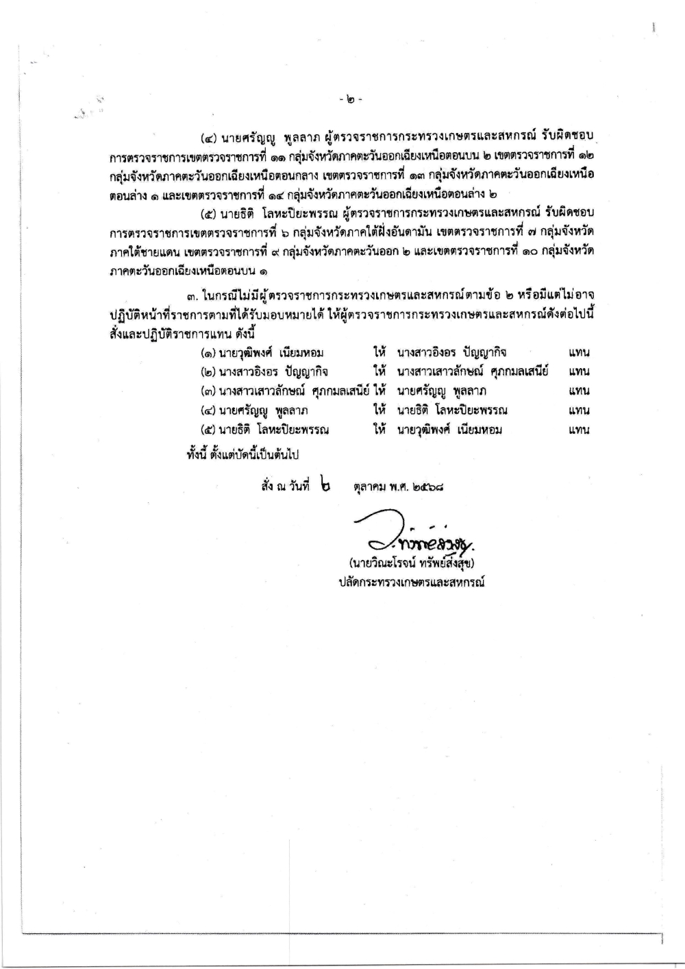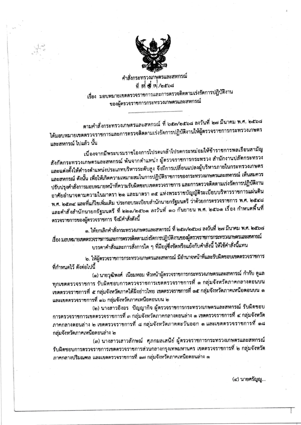 คำสั่งกระทรวงเกษตรและสหกรณ์ ที่ 797/2568 ลงวันที่ 2 ตุลาคม 2568 เรื่อง มอบหมายเขตตรวจราชการและการตรวจติดตามเร่งรัดการปฏิบัติงานของผู้ตรวจราชการกระทรวงเกษตรและสหกรณ์
