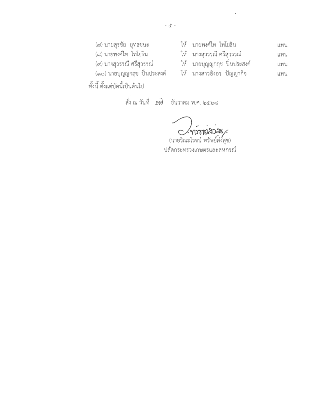 คำสั่งกระทรวงเกษตรและสหกรณ์ ที่ 1077/2568 เรื่อง มอบหมายเขตตรวจราชการและการตรวจติดตามเร่งรัดการปฏิบัติงานของผู้ตรวจราชการกระทรวงเกษตรและสหกรณ์