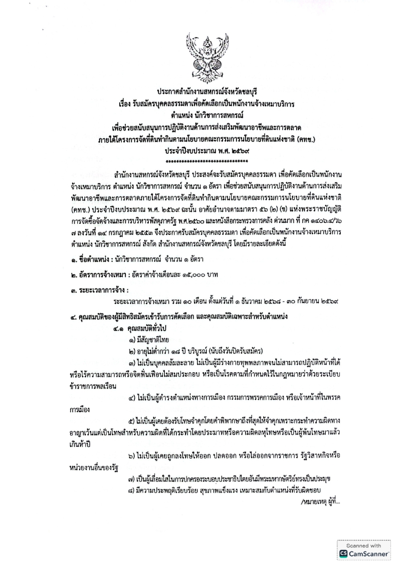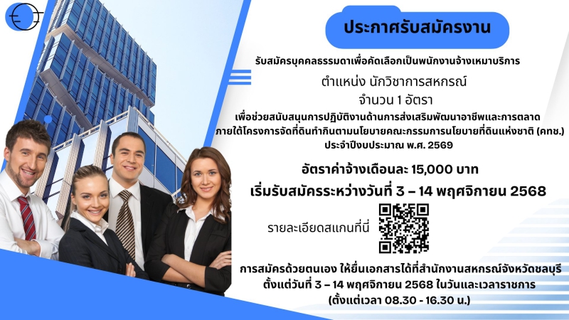เรื่อง รับสมัครบุคคลธรรมดาเพื่อคัดเลือกเป็นพนักงานจ้างเหมาบริการ ตำแหน่ง นักวิชาการสหกรณ์