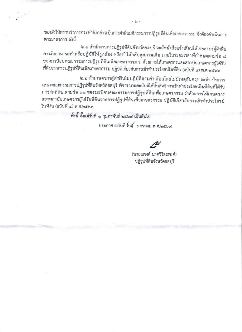 ประกาศสำนักงานการปฏิรูปที่ดินจังหวัดชลบุรี