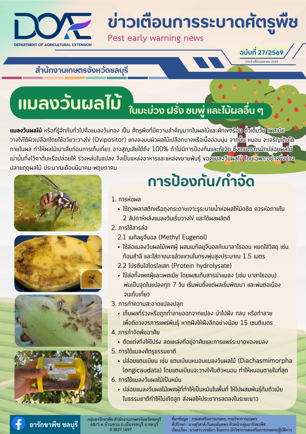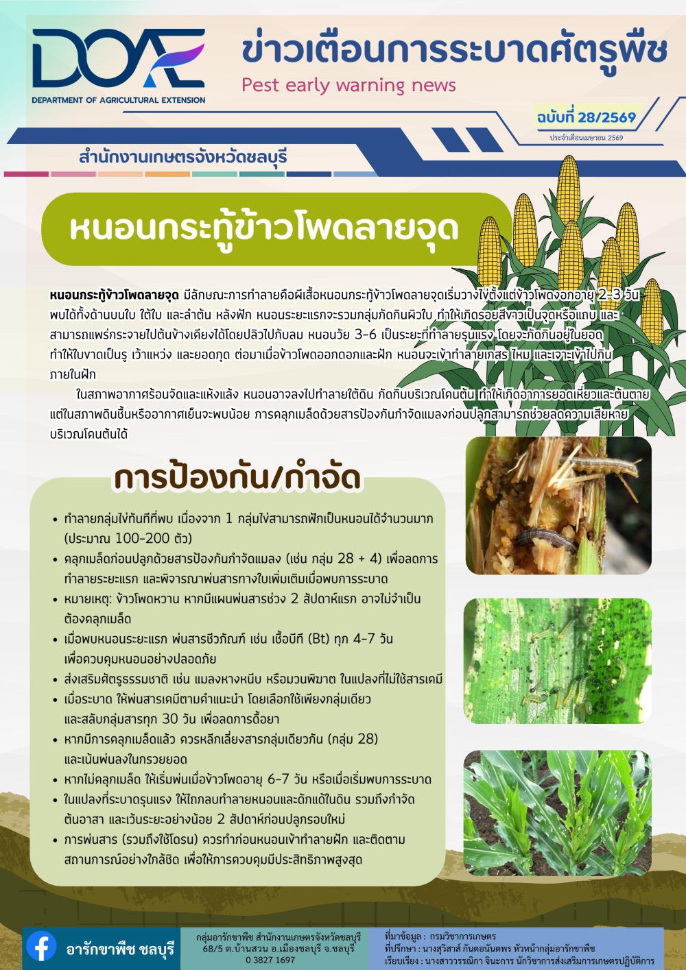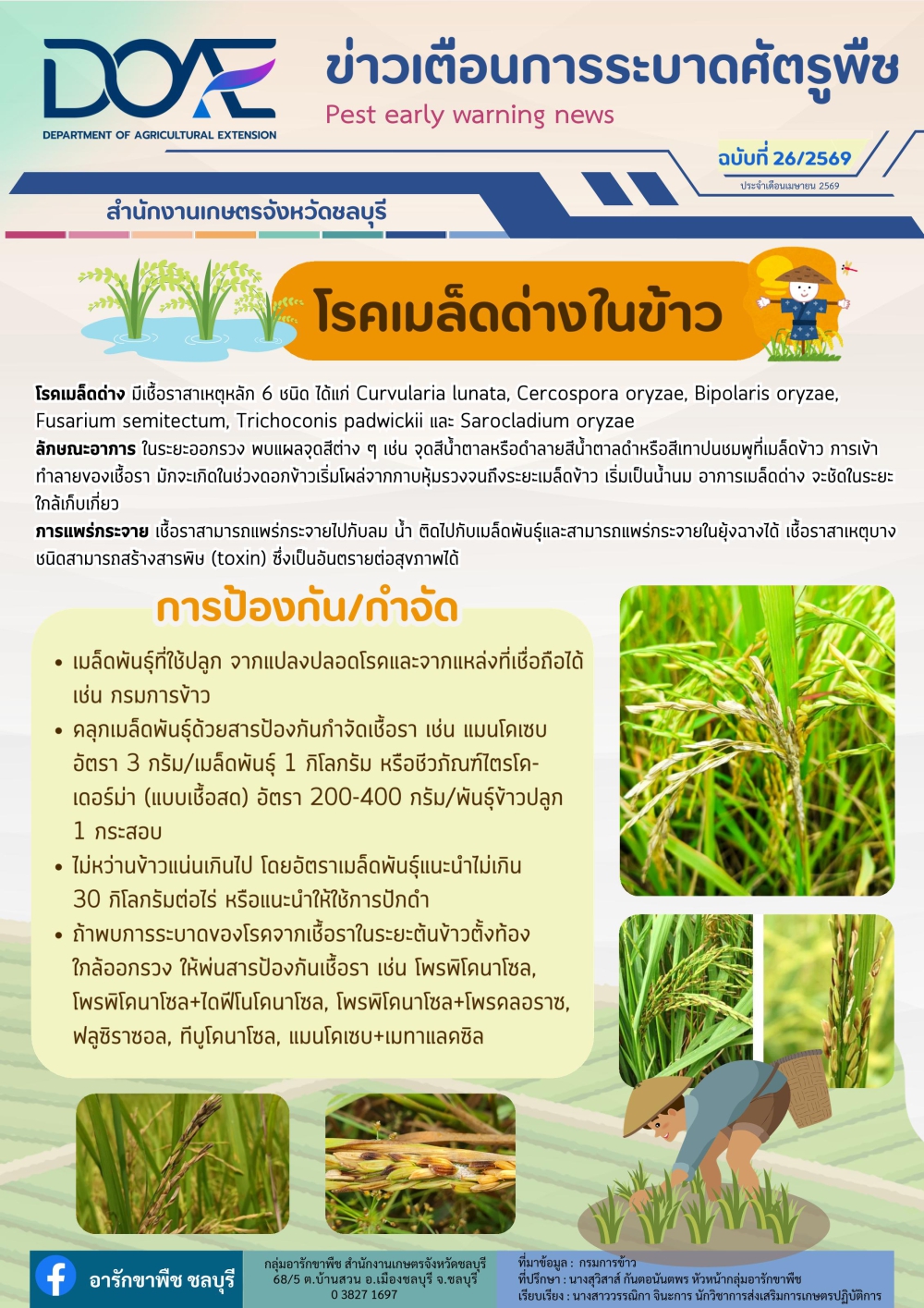 ข่าวเตือนการระบาดศัตรูพืชประจำเดือนประจำเดือนเมษายน 2569