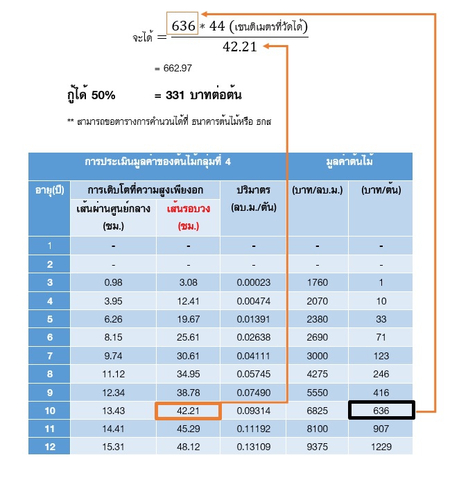 เมื่อเจ้าหน้าที่วัดขนาดต้นไม้ เพื่อตีมูลค่าตามที่กำหนดไว้แล้ว เจ้าของที่ดินก็จะสามารถใช้ต้นไม้เป็นหลักทรัพย์ค้ำประกันได้ถึง 50% ของมูลค่าทั้งหมด