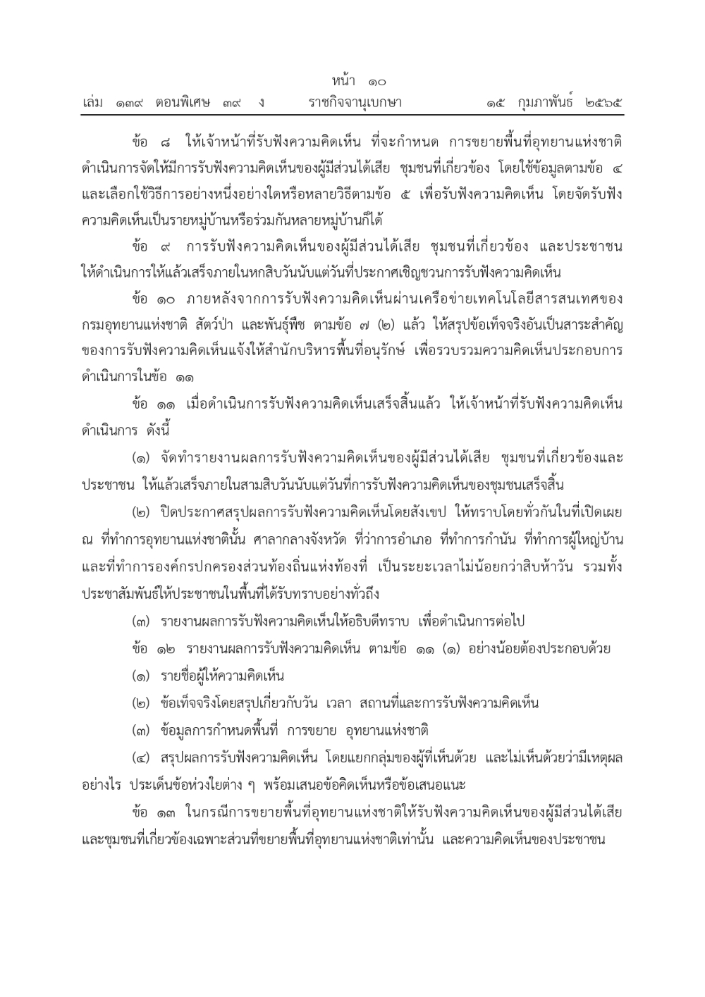 การรับฟังความคิดเห็นและการมีส่วนร่วมของผู้มีส่วนได้เสีย ชุมชนที่เกี่ยวข้อง และประชาชนในการกำหนดพื้นที่ การขยาย และการเบิกถอนอุทยานแห่งชาติ วนอุทยาน สวนพฤกษศาสตร์ และสวนรุกขชาติ พ.ศ. 2564