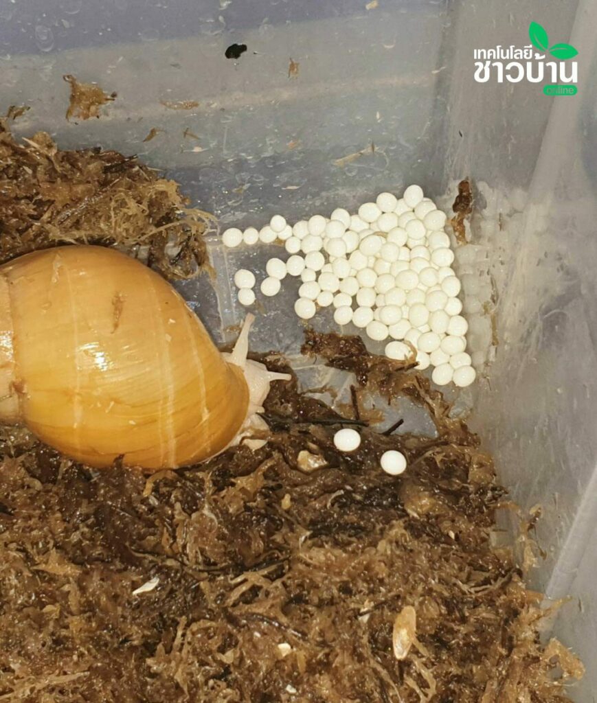 เนื่องจากหอยทากเป็นสัตว์ที่มี 2 เพศในตัวเอง ทำให้การผสมพันธุ์คือ การแลกน้ำเชื้อของอีกตัว เมื่อการผสมพันธุ์สิ้นสุดลง อีก 1 เดือน จะทำการออกไข่ ในการผสมพันธุ์ 1 ครั้ง สามารถออกไข่ได้ 2-3 รอบ ในแต่ละตัวจะออกไข่คอกละ 100-200 ใบต่อครั้ง การเพาะพันธุ์หอยทากให้ได้เลือดนิ่ง มีสีสันตามที่ต้องการแล้ว จำเป็นต้องเพาะพันธุ์ต่อเรื่อยๆ เลือดจะนิ่งเมื่อเข้าสู่เจนเนอเรชั่นที่ 7 และหอยทากที่มีการพัฒนาสายพันธุ์แล้ว ไม่สามารถเลี้ยงรวมกับสายพันธุ์เดียวกันได้ เพราะจะเกิดการผสมพันธุ์กันเองและทำให้สายพันธุ์ผิดเพี้ยนไป แต่สามารถเลี้ยงหอยทากรวมกับสายพันธุ์ที่แตกต่างได้