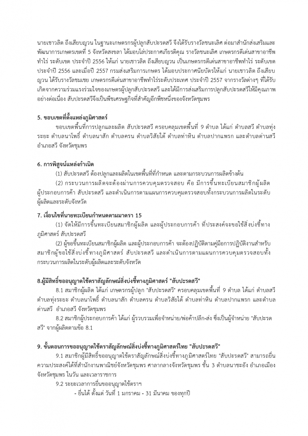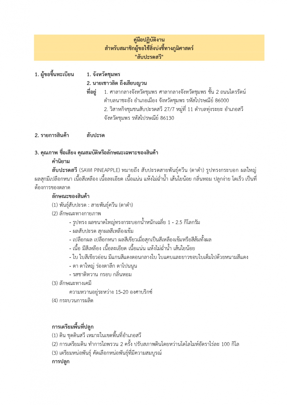 คู่มือปฏิบัติงาน สำหรับสมาชิกผู้ขอใช้สิ่งบ่งชี้ทางภูมิศาสตร์ "สับปะรดสวี"