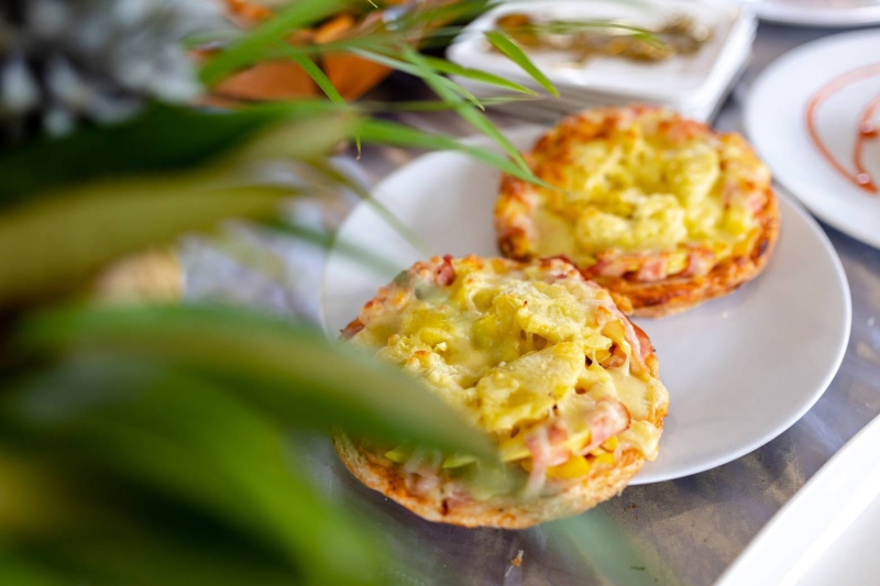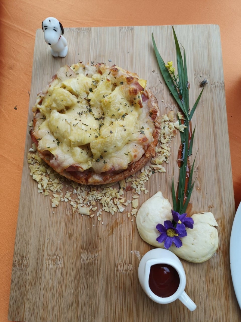 บ้านสวนใจบุญ ตำบลทุ่งตะไคร อำเภอเมืองชุมพร โทร.0902814345 เมนูอาหารคาว: พิซซ่าหน้าบางกรอบหน้าทุเรียนสามสหาย เมนูอาหารหวาน: Durian Crumble Chesscake