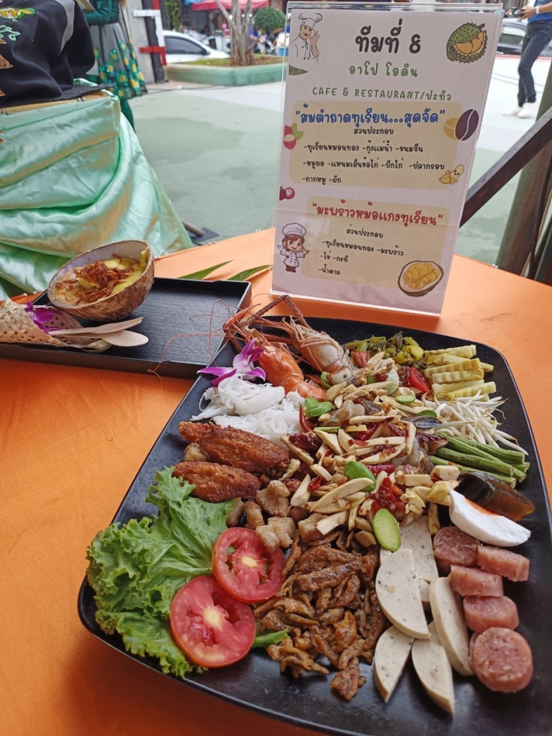 สำนักงานเกษจรจังหวัดชุมพร ขอแนะนำร้านอาหารที่เข้าร่วมแข่งขันกิจกรรมการแข่งขันค้นหาเมนูเด็ดอัตลักษณ์ทุเรียนชุมพร จำนวน 6 ร้าน ในงาน “Amazing… King of Durian Chumphon 2023: มหัศจรรย์ราชาทุเรียนชุมพร 2566” จัดโดยจังหวัดชุมพรร่วมกับสำนักงานเกษตรจังหวัดชุมพร