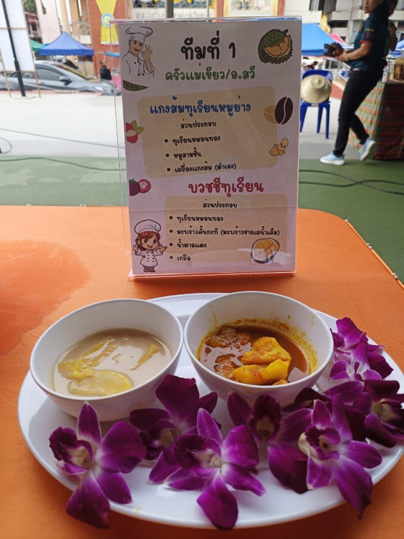 รางวัลชมเชย ครัวแม่เขียว ต.ด่านสวี อ.สวี โทร.0936140218 เมนูอาหารคาว: แก้งส้มหมูย่างทุเรียนหมอนทอง เมนูอาหารหวาน: บวชชีทุเรียนหมอนทอง ครัวดอนรวบ ต.บางหมาก อ.เมืองชุมพร เมนูอาหารคาว: หมอนทองสะดุ้งเคย เมนูอาหารหวาน:บัวลอยชุมพร