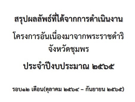 สรุปผลการดำเนินงานโครงการอันเนื่องมาจากพระราชดําริฯ จังหวัดชุมพร ประจําปีงบประมาณ 2565 รอบ12 เดือน