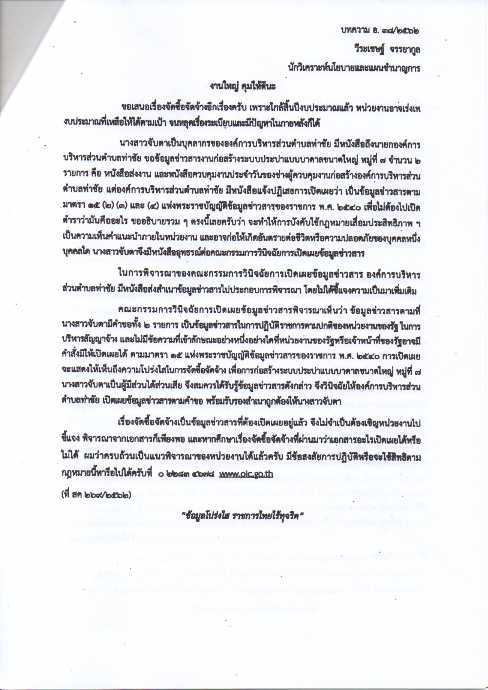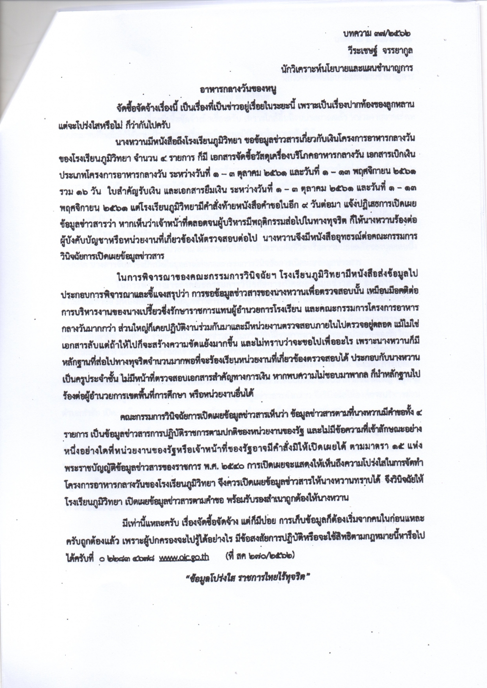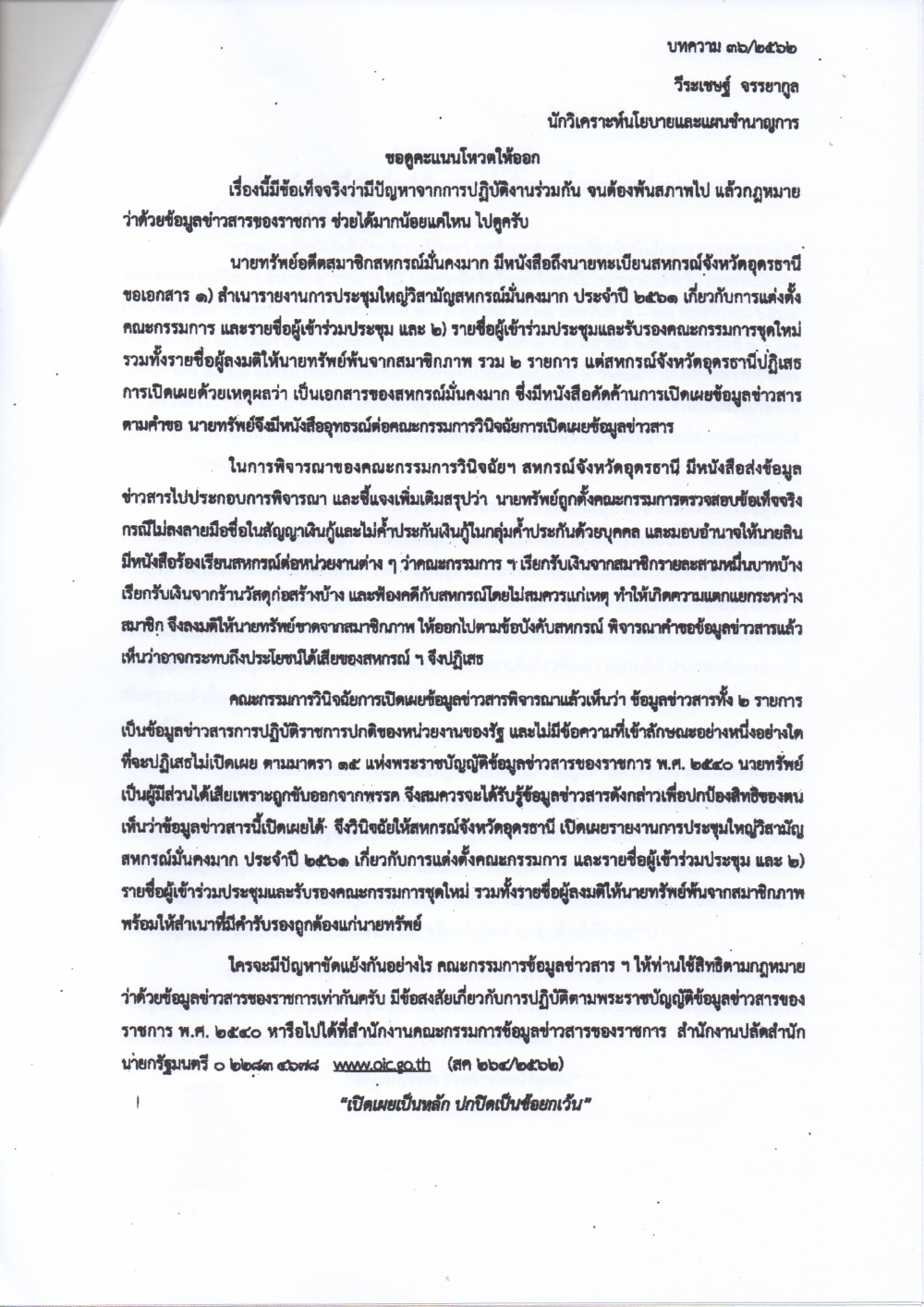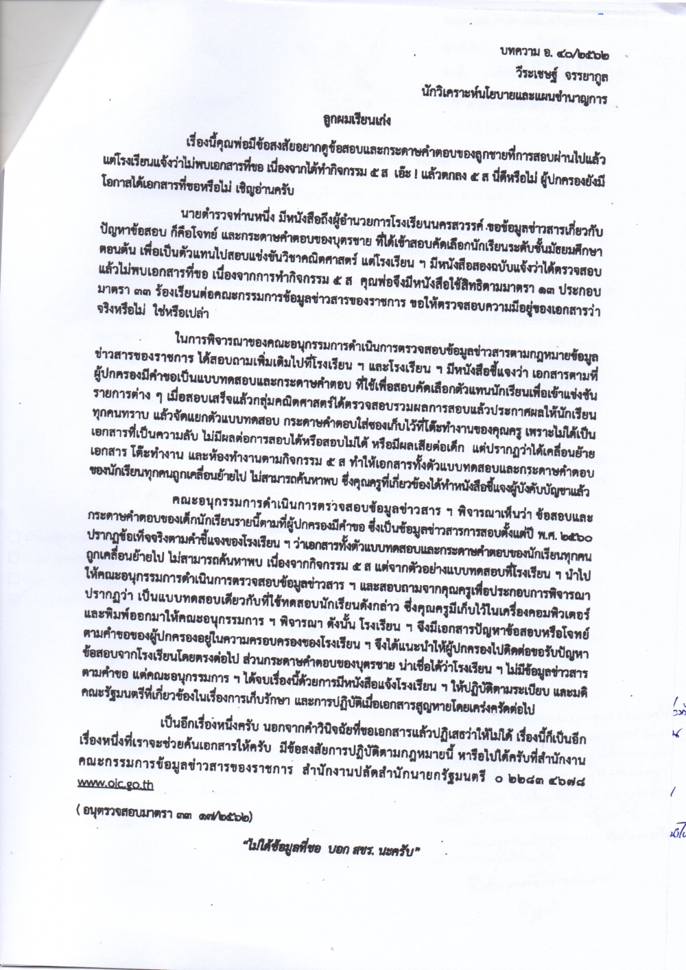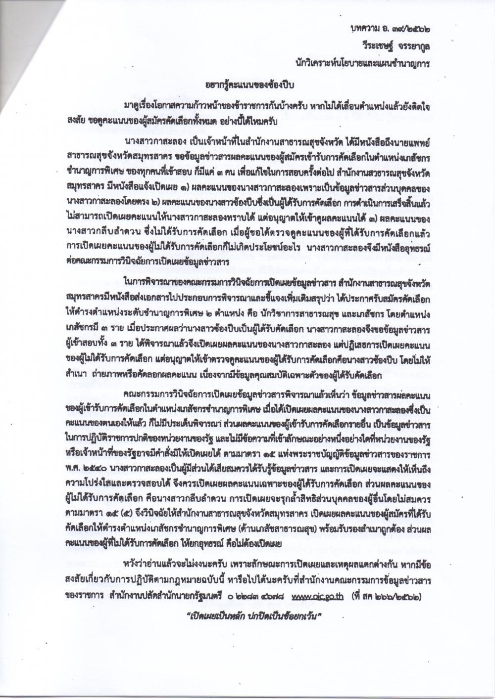 สำนักงานคณะกรรมการข้อมูลข่าวสารของราชการ ได้จัดทำเอกสารเผยแพร่ความรู้เกี่ยวกับพระราชบัญญัติข้อมูลข่าวสารของราชการ พ.ศ.2540 จำนวน 5 เรื่อง เพื่อสร้างการรับรู้แก่เจ้าหน้าที่ ในการนำไปประกอบการปฏิบัติงานในการเปิดเผยข้อมูลข่าวสารต่างๆ