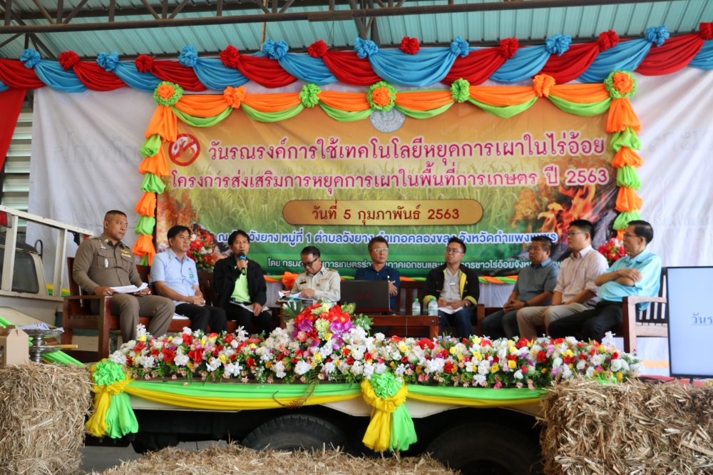 ด้วยปัจจุบันประชาชนประสบปัญหาหมอกควันและมลพิษทางอากาศในพื้นที่จังหวัดกำแพงเพชร เป็นปัญหาที่เกิดขึ้นเป็นประจำทุกปี สาเหตุหลักมาจากการเผาในพื้นที่โล่งทั้งในพื้นที่การเกษตรและพื้นที่ป่า ส่งผลกระทบต่อสุขภาพอนามัยของประชาชนเป็นอย่างมาก นอกจากนี้การเผาในพื้นที่การเกษตรยังส่งผลเสียต่อการทำอาชีพการเกษตรโดยตรงทำให้ดินเสื่อมโทรม ขาดความอุดมสมบูรณ์ กรมส่งเสริมการเกษตร ได้สนับสนุนงบประมาณให้จังหวัดกำแพงเพชรดำเนินการส่งเสริมการหยุดเผาในพื้นที่การเกษตร โดยมีเป้าหมายในการเสริมสร้าง ความรู้ความเข้าใจให้เกษตรกรตระหนักถึงผลกระทบที่จะเกิดขึ้น ส่งเสริมการมีส่วนร่วมของชุมชนในการแก้ไขปัญหาการเผาในพื้นที่การเกษตรและนำเสนอทางเลือกในการใช้เทคโนโลยีการเกษตรทดแทนการเผา ให้กับเกษตรกร และขอให้เกษตรกรใช้โอกาสนี้ ให้เกิดประโยชน์สูงสุดแก่ตัวท่านเอง โดยเข้ารับความรู้และขอรับคำปรึกษากับเจ้าหน้าที่ทุกภาคส่วนที่เกี่ยวข้อง ให้มากที่สุด เพื่อจะได้นำความรู้ที่ได้รับไปเป็นแนวทางในการหยุดเผา ต่อไป