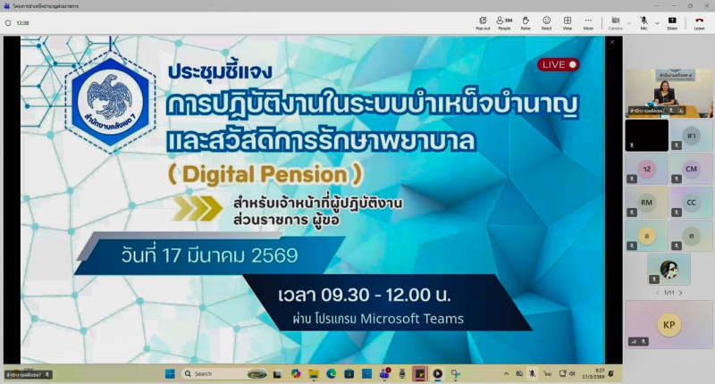 เมื่อวันที่ 17 มีนาคม 2569 เวลา 09.30 น. นายประดิษฐ์ เกษมวิสิฐกุล เกษตรและสหกรณ์จังหวัดสมุทรสงคราม มอบ นางสาวกนกอร พุ่มสุข หัวหน้าฝ่ายบริหารทั่วไป สำนักงานเกษตรและสหกรณ์จังหวัดสมุทรสงคราม ร่วมประชุมชี้แจง “การปฏิบัติงานในระบบบำเหน็จบำนาญและสวัสดิการรักษาพยาบาล (Digital Pension) สำหรับเจ้าหน้าที่ผู้ปฏิบัติงานส่วนราชการผู้ขอ” ผ่านโปรแกรม Microsoft Teams ณ สำนักงานเกษตรและสหกรณ์จังหวัดสมุทรสงคราม ชั้น 4 ศาลากลางจังหวัดสมุทรสงคราม