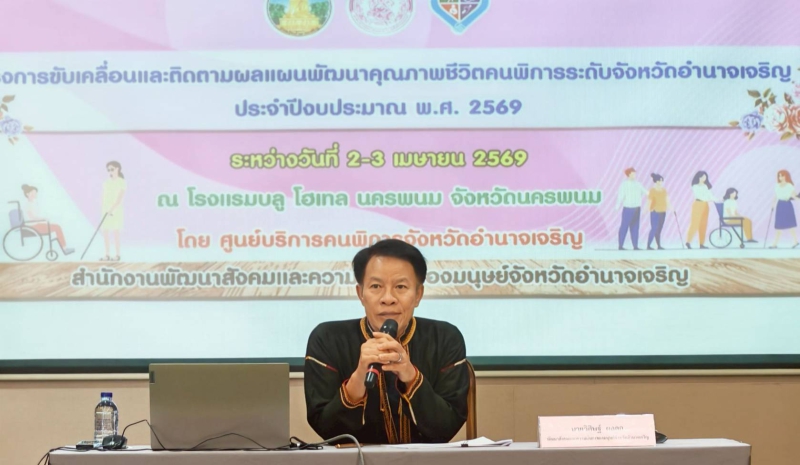 วันพฤหัสบดีที่ 2 เมษายน นางปารีณา สอนอาจ เกษตรและสหกรณ์จังหวัดอำนาจเจริญ มอบหมายนางสาวปิยะพร สุริโยตระกูล นักวิเคราะห์นโยบายและแผนชำนาญการ เข้าร่วมโครงการขับเคลื่อนและติดตามผลแผนพัฒนาคุณภาพชีวิตคนพิการระดับจังหวัดอำนาจเจริญประจำปี พ.ศ 2569 ในระหว่างวันที่ 2-3 เมษายน 2569 ณ โรงแรม บลูโฮเทล จังหวัดนครพนม กลุ่มเป้าหมายประกอบด้วย ผู้ดูแลคนพิการ อาสาสมัครเครือข่ายด้านคนพิการ คณะอนุกรรมการส่งเสริมพัฒนาคุณภาพชีวิตคนพิการประจำจังหวัด องค์กรปกครองส่วนท้องถิ่น และเจ้าหน้าที่สำนักงานพัฒนาสังคมและความมั่นคงของมนุษย์จังหวัดอำนาจเจริญ ประธานเปิดโครงการ โดยนายวิศิษฐ์ ผลดก พัฒนาสังคมและความมั่นคงของมนุษย์จังหวัดอำนาจเจริญ