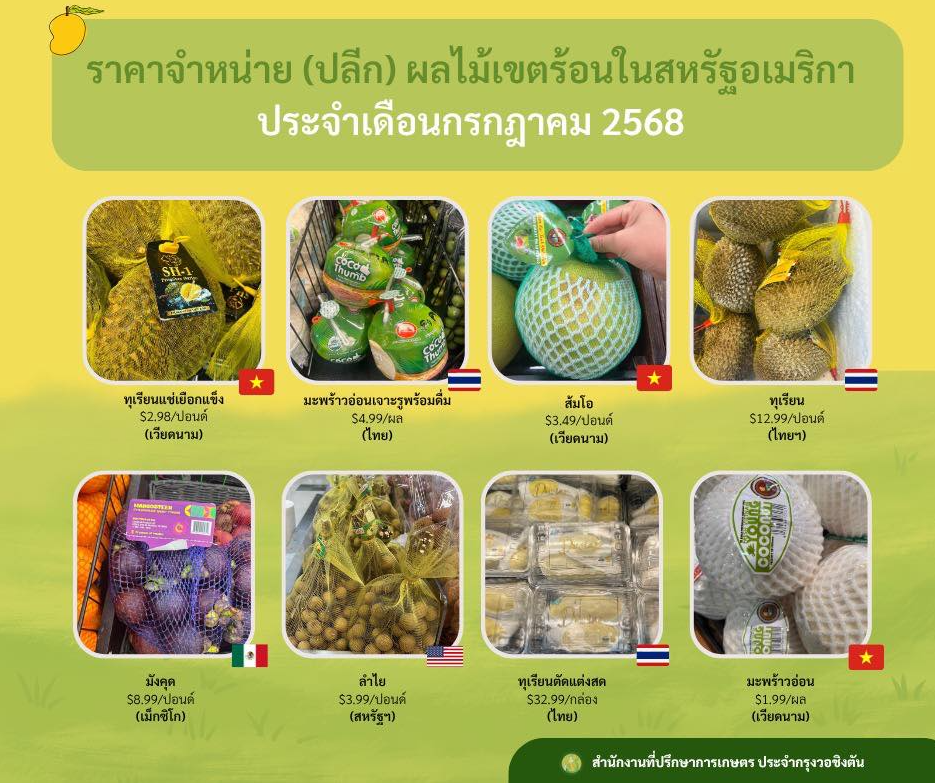 สำรวจราคาผลไม้เขตร้อนและข้าว ประจำเดือนกรกฎาคม 2568