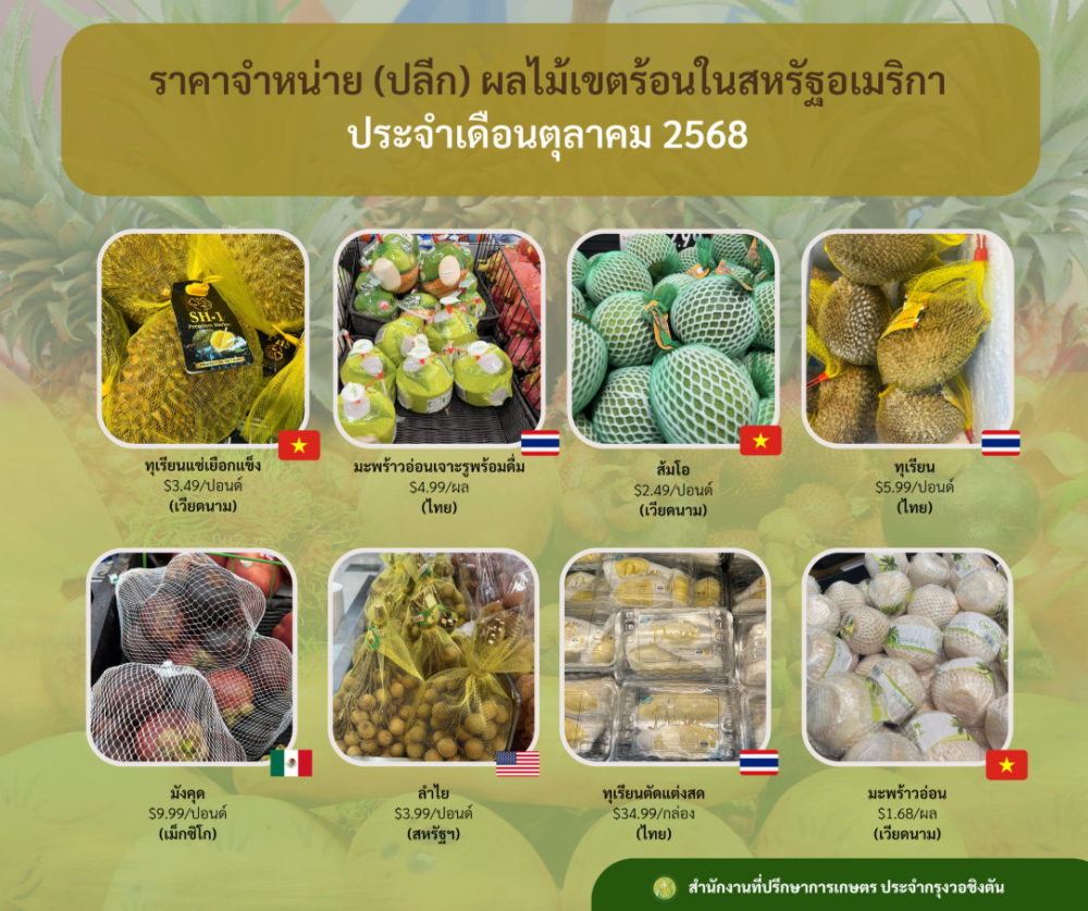 สำรวจราคาผลไม้เขตร้อนและข้าว ประจำเดือนตุลาคม 2568