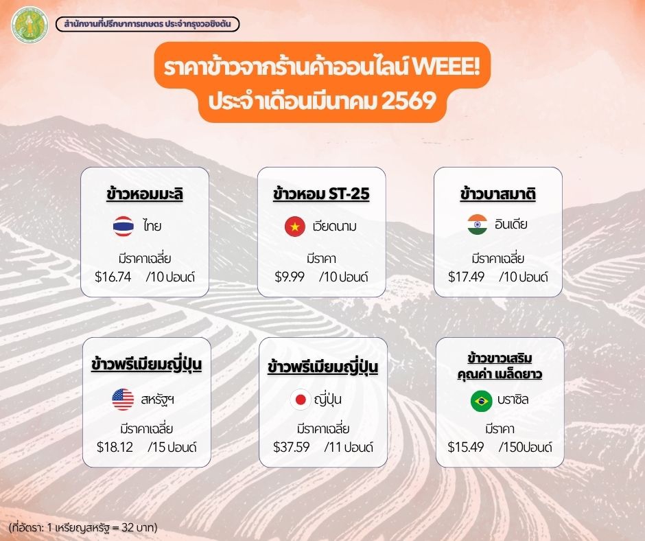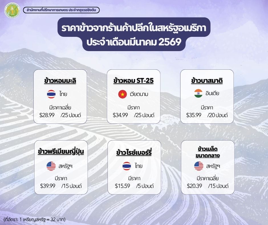 ได้ดำเนินการสำรวจตลาดผลไม้เขตร้อนและข้าวในเขต DMV (Washington DC – Maryland – Virginia) ประจำเดือนมีนาคม 2569 โดยมีรายละเอียดดังนี้