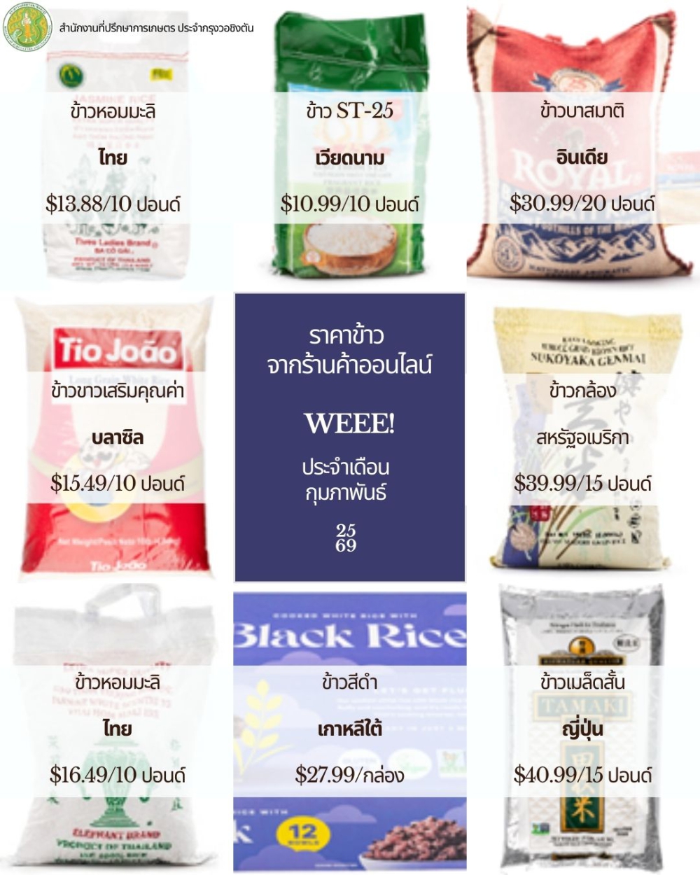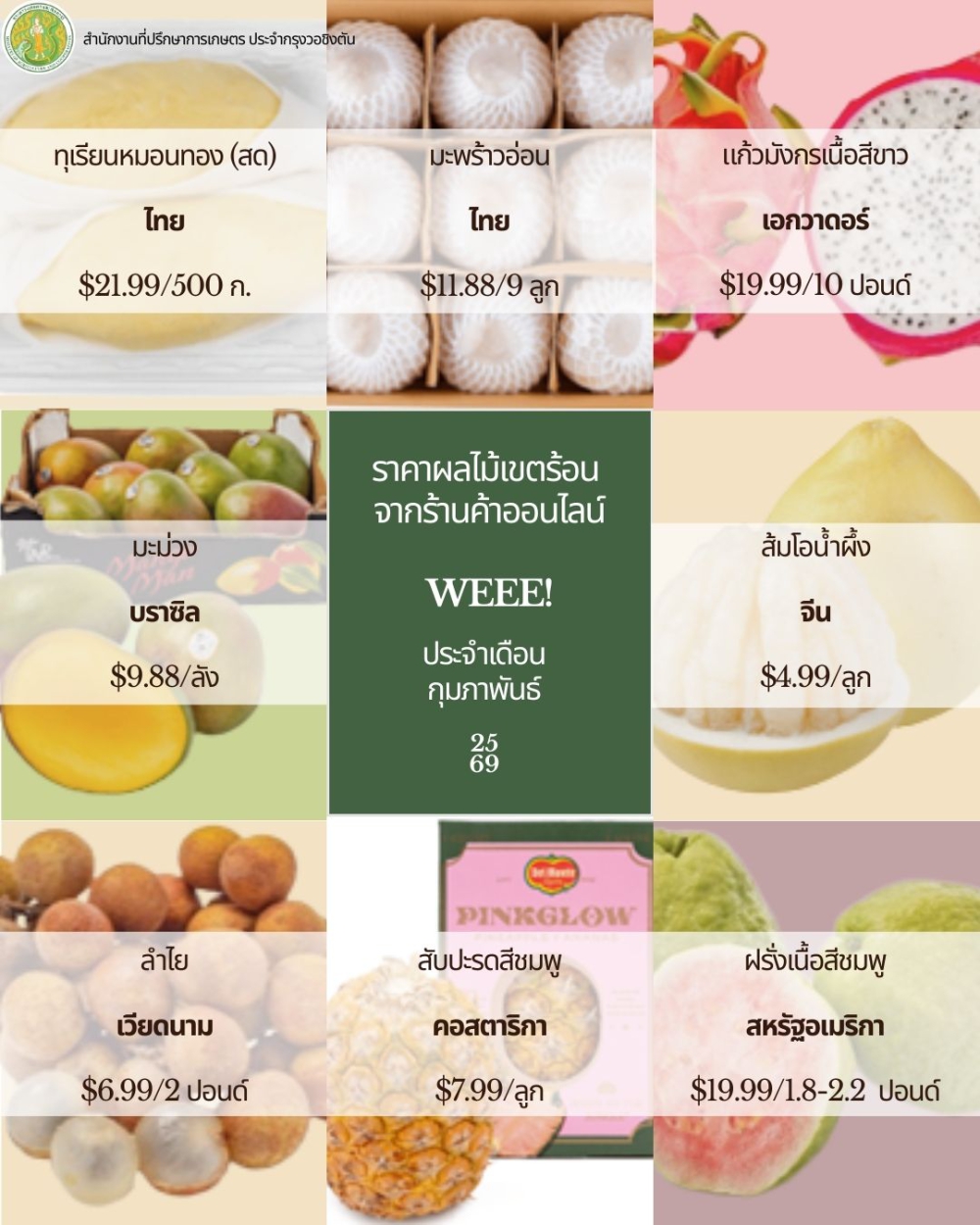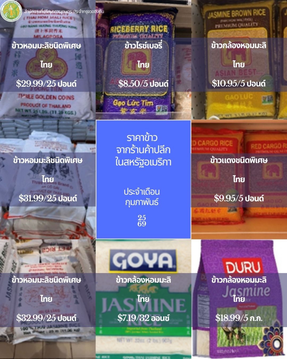 ได้ดำเนินการสำรวจตลาดผลไม้เขตร้อนและข้าวในเขต DMV (Washington DC – Maryland – Virginia) ประจำเดือนกุมภาพันธ์ 2569 โดยมีรายละเอียดดังนี้