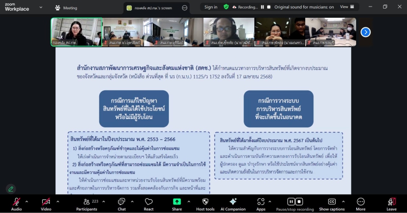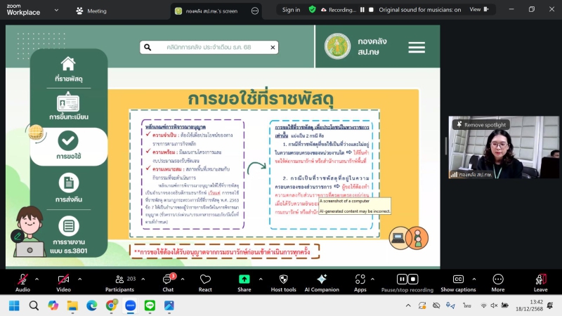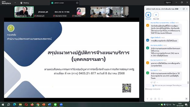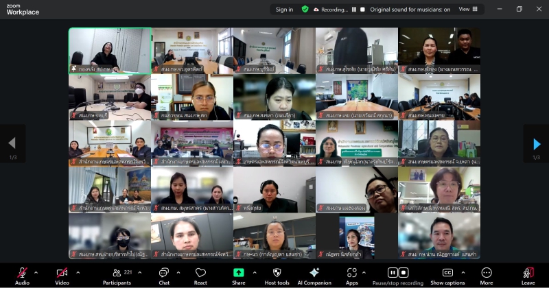 นางสาวธารารัตน์ โพธิ์ศรี ผู้อำนวยการกองคลัง เป็นประธานเปิดกิจกรรมคลินิกการคลัง สป.กษ. ประจำเดือนธันวาคม 2568 ในหัวข้อเรื่อง 1. ที่ราชพัสดุ 2. การบริหารพัสดุ 3. การบริหารจัดการทรัพย์สินที่เกิดจากจังหวัด/กลุ่มจังหวัด 4. การใช้รถยนต์ราชการ ผ่านระบบโปรแกรม Zoom Meeting ณ ห้องประชุม อาคาร 5 ชั้น 2 โดยมีวัตถุประสงค์เพื่อสร้างการรับรู้ และความเข้าใจ แลกเปลี่ยนความคิดเห็น ประสบการณ์ ให้คำปรึกษา และข้อเสนอแนะในการปฏิบัติงาน รวมทั้งติดตามผลการดำเนินงานของหน่วยงานในสังกัดสำนักงานปลัดกระทรวงเกษตรและสหกรณ์