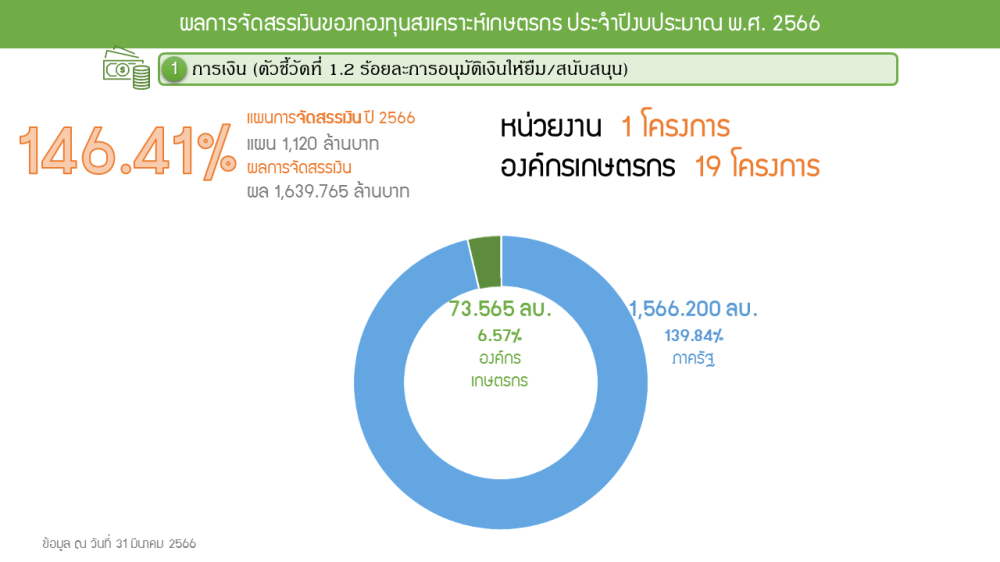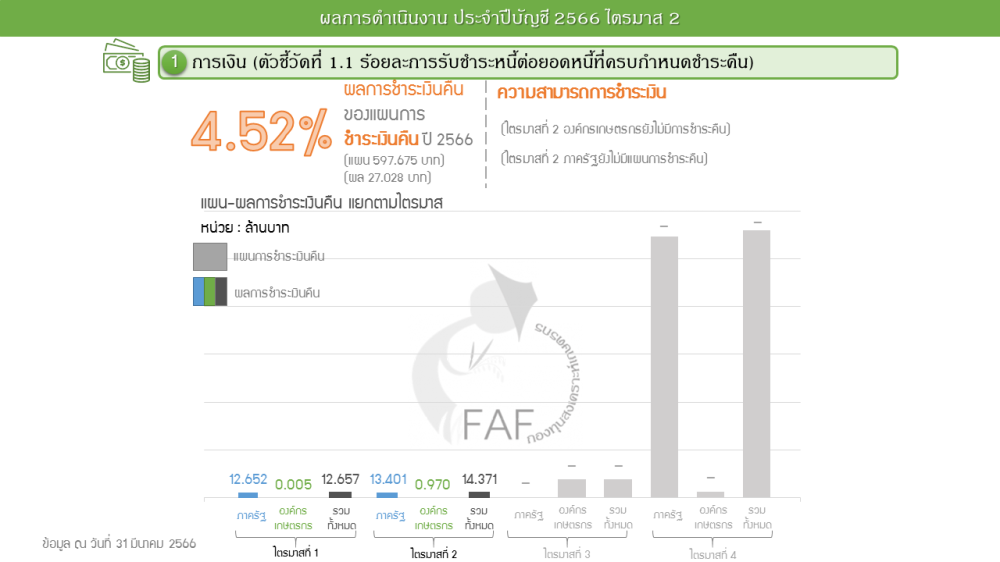 ผลการชำระเงินคืนกองทุนสงเคราะห์เกษตรกร ไตรมาส 2 ประจำปีงบประมาณ พ.ศ. 2566