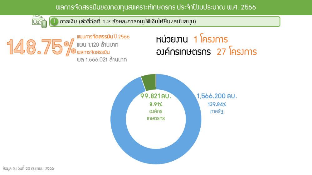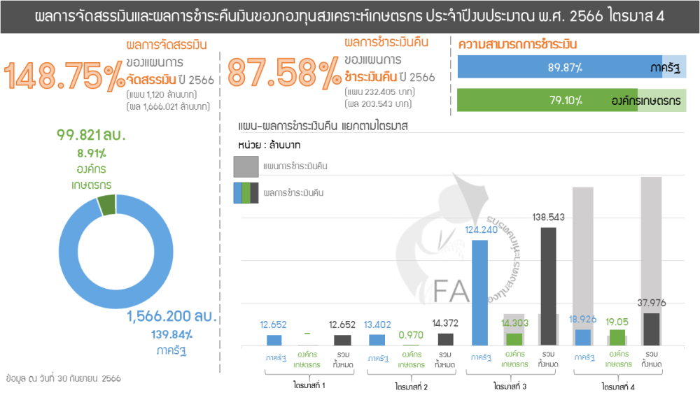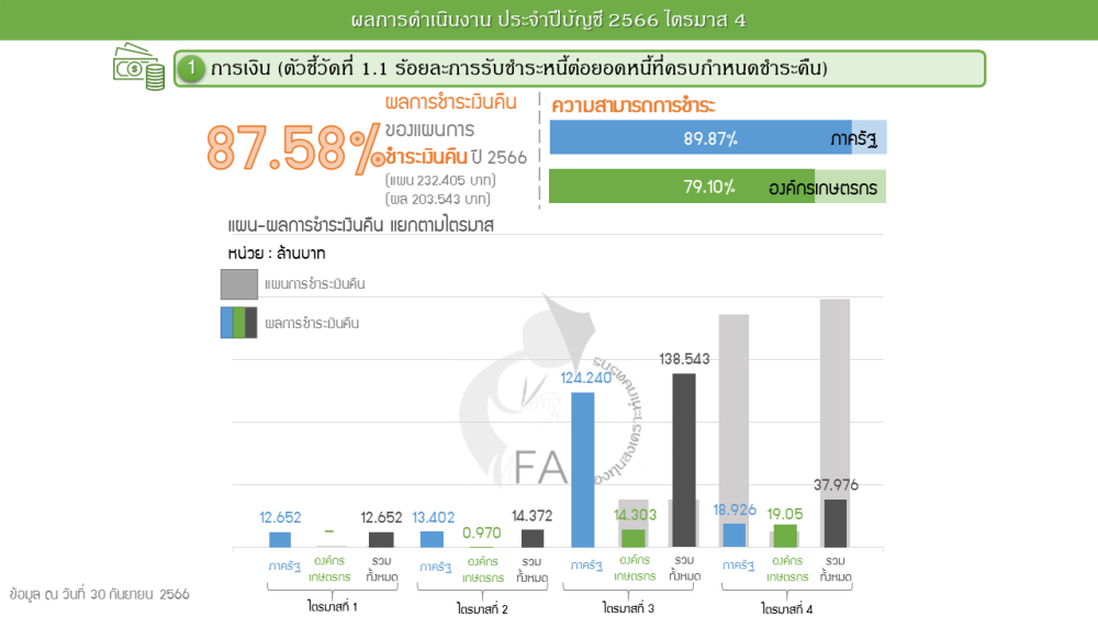 ผลการชำระเงินคืนกองทุนสงเคราะห์เกษตรกร ไตรมาส 4 ประจำปีงบประมาณ พ.ศ. 2566