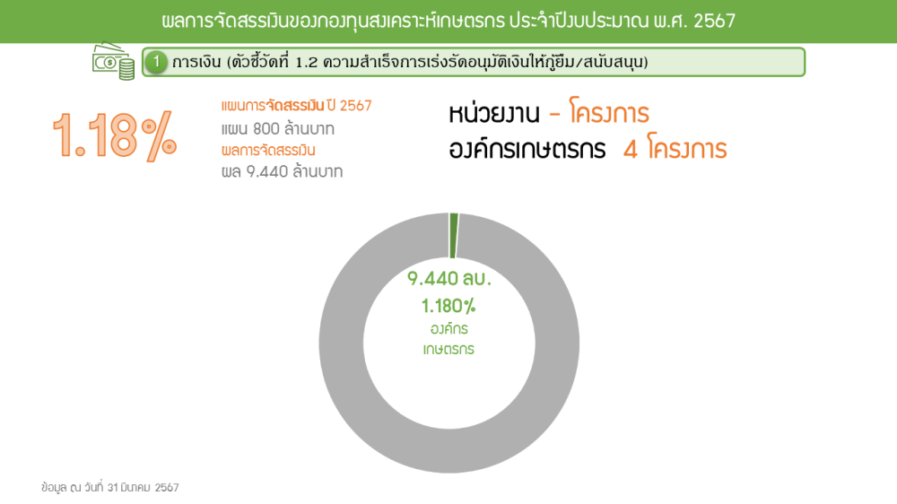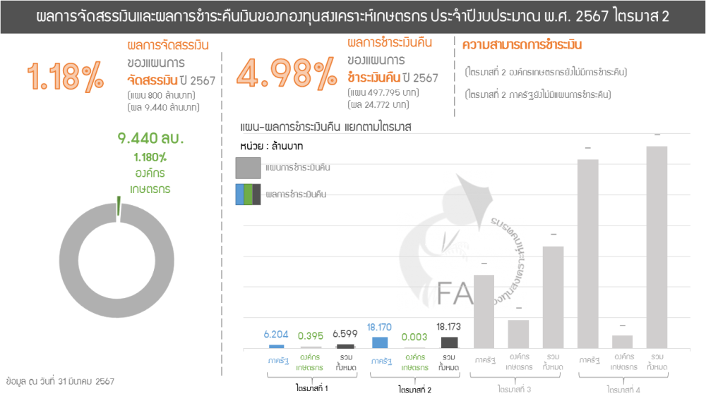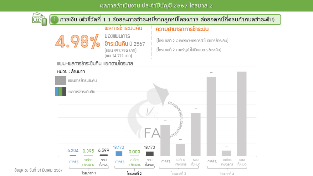ผลการชำระเงินคืนกองทุนสงเคราะห์เกษตรกร ไตรมาส 2 ประจำปีงบประมาณ พ.ศ. 2567