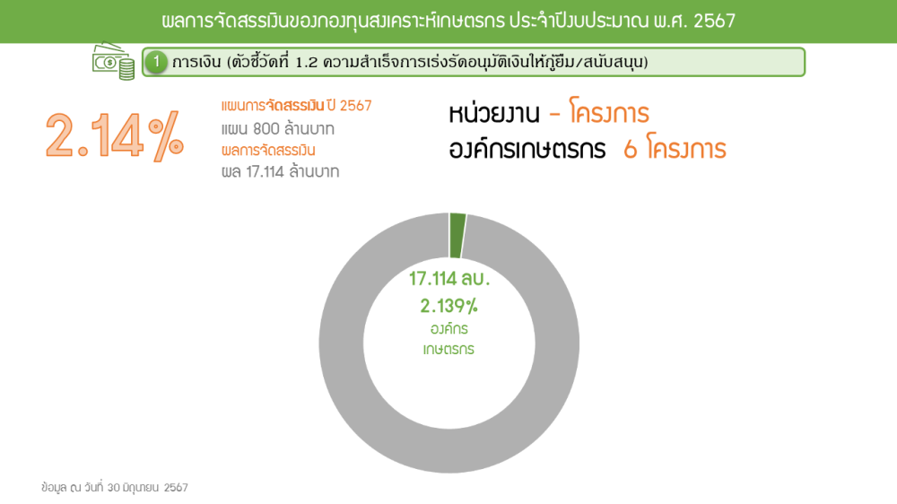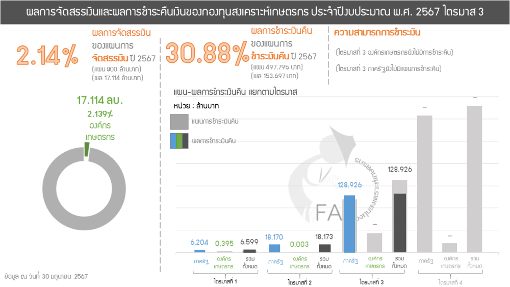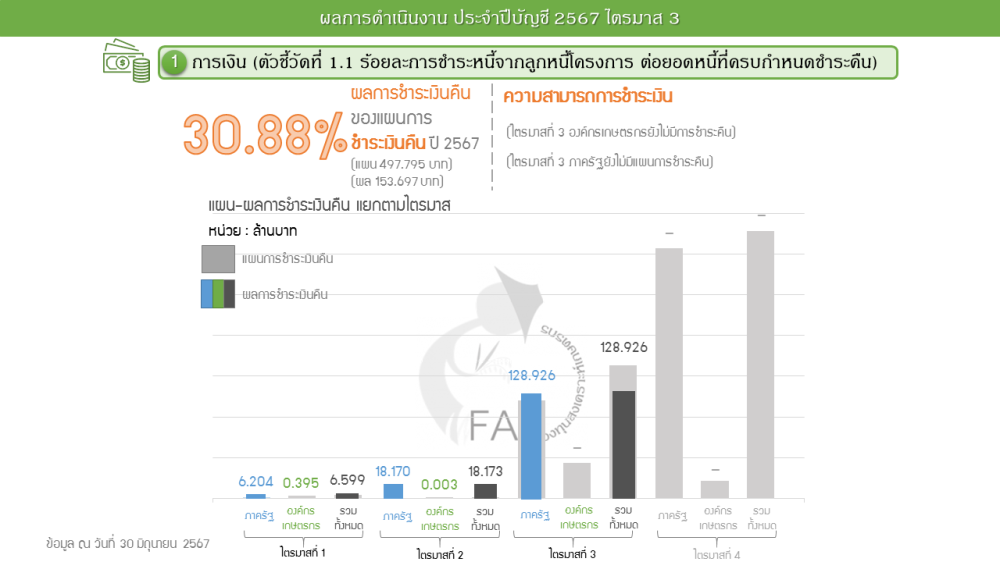 ผลการชำระเงินคืนกองทุนสงเคราะห์เกษตรกร ไตรมาส 3 ประจำปีงบประมาณ พ.ศ. 2567