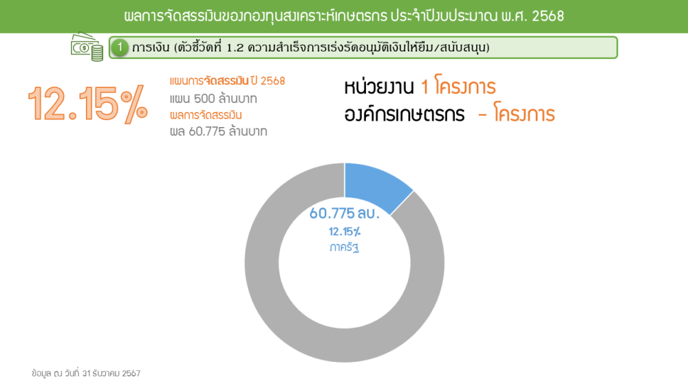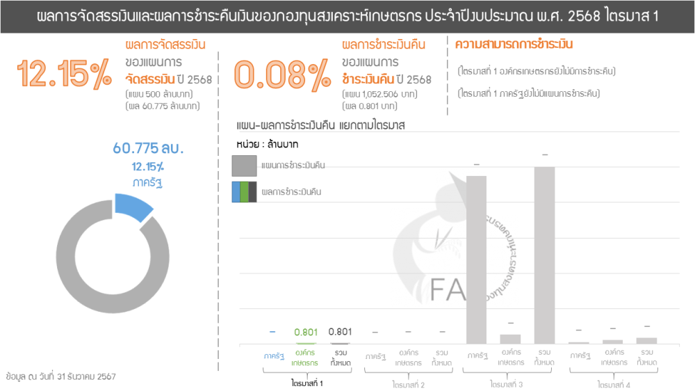 ผลการชำระเงินคืนกองทุนสงเคราะห์เกษตรกร ไตรมาส 1 ประจำปีงบประมาณ พ.ศ. 2568