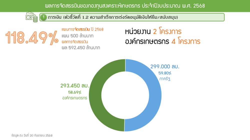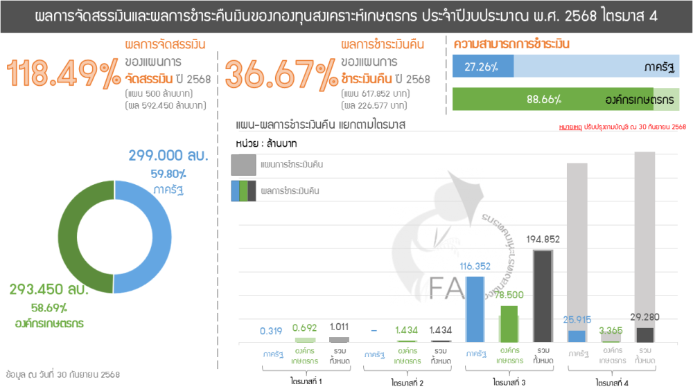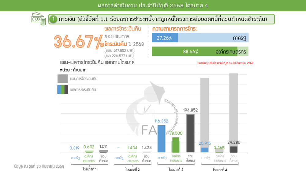ผลการชำระเงินคืนกองทุนสงเคราะห์เกษตรกร ไตรมาส 4 ประจำปีงบประมาณ พ.ศ. 2568